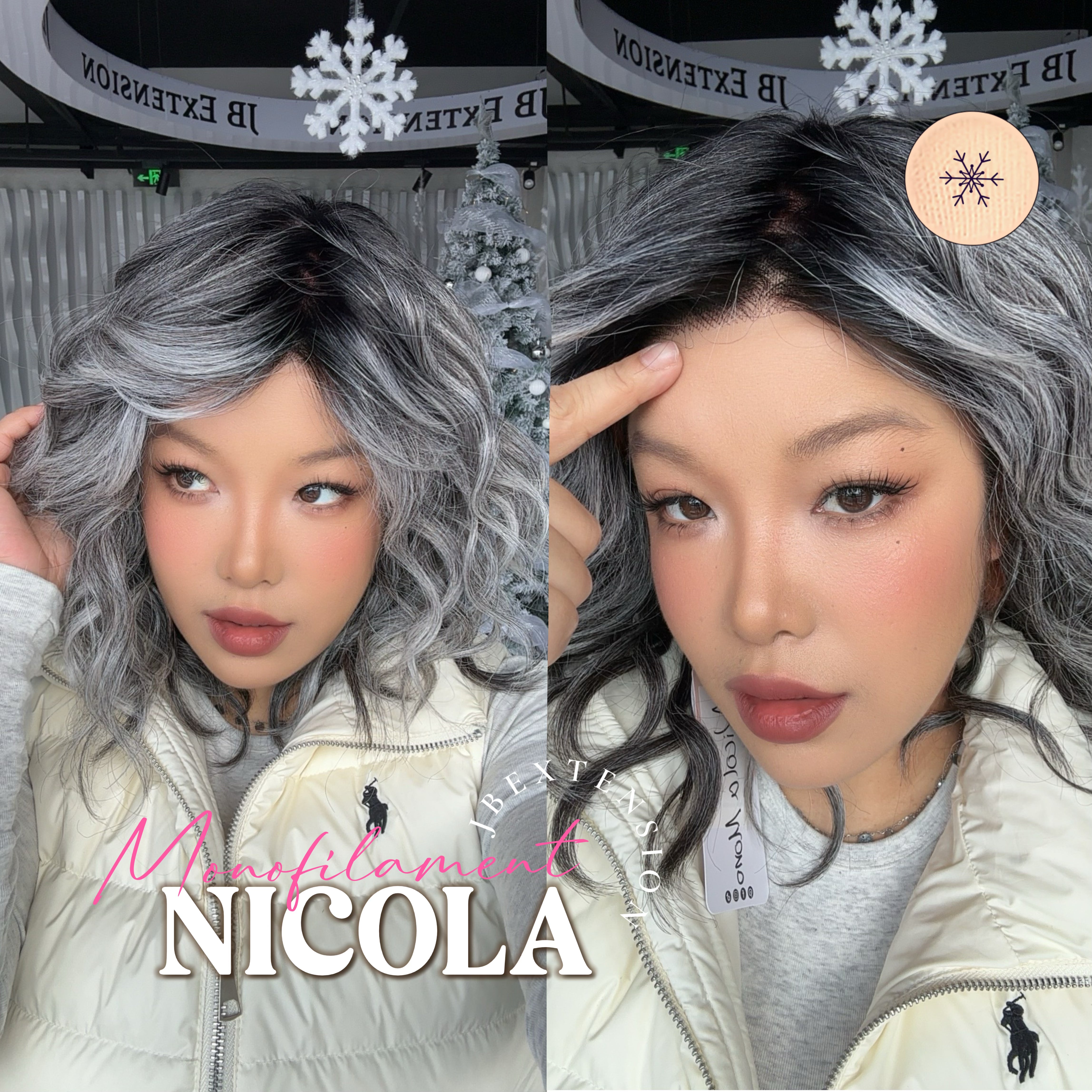 JBEXTENSION NICOLA MONO Monofilament Handmade Wig 6X5 Full Monofilament Hand Tied Top Wig 14 Inches Salt and Pepper Mono Lace Wig Glueless Wig NICOLA MONO【BENDY EAR TABS】