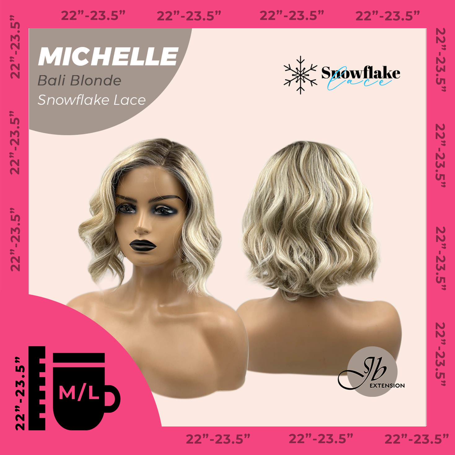 JBEXTENSION 10 Inches Bali Blonde Pre-Cut Side Part Snowflake Lace Frontlace Glueless Wig MICHELLE BALI BLONDE【BENDY EAR TABS】- M/L
