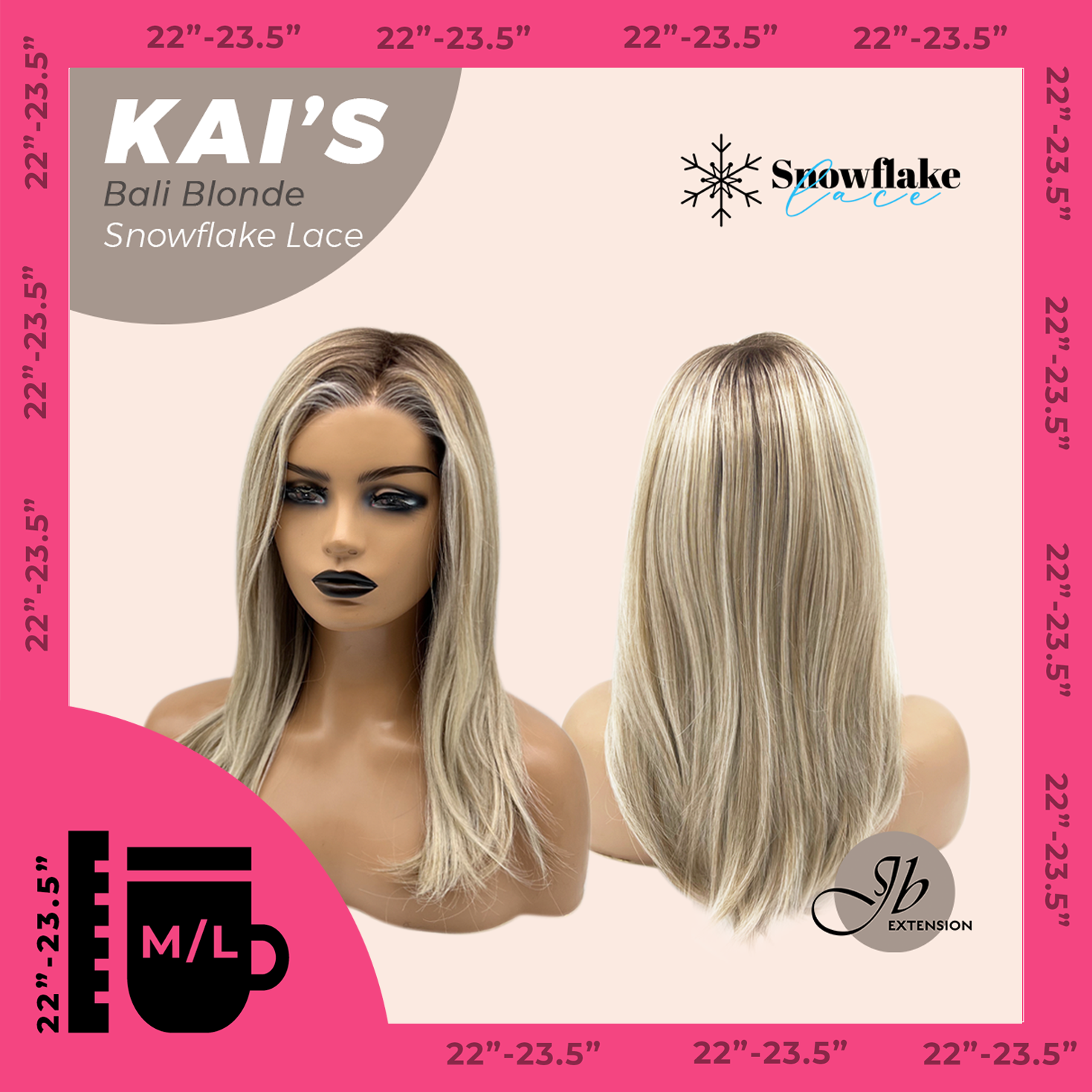 JBEXTENSION 18 Inches Bali Blonde Pre-Cut Snowflake Lace Frontlace Glueless Wig KAI'S BALI BLONDE【PERMATEASE】【BENDY EAR TABS】- M/L