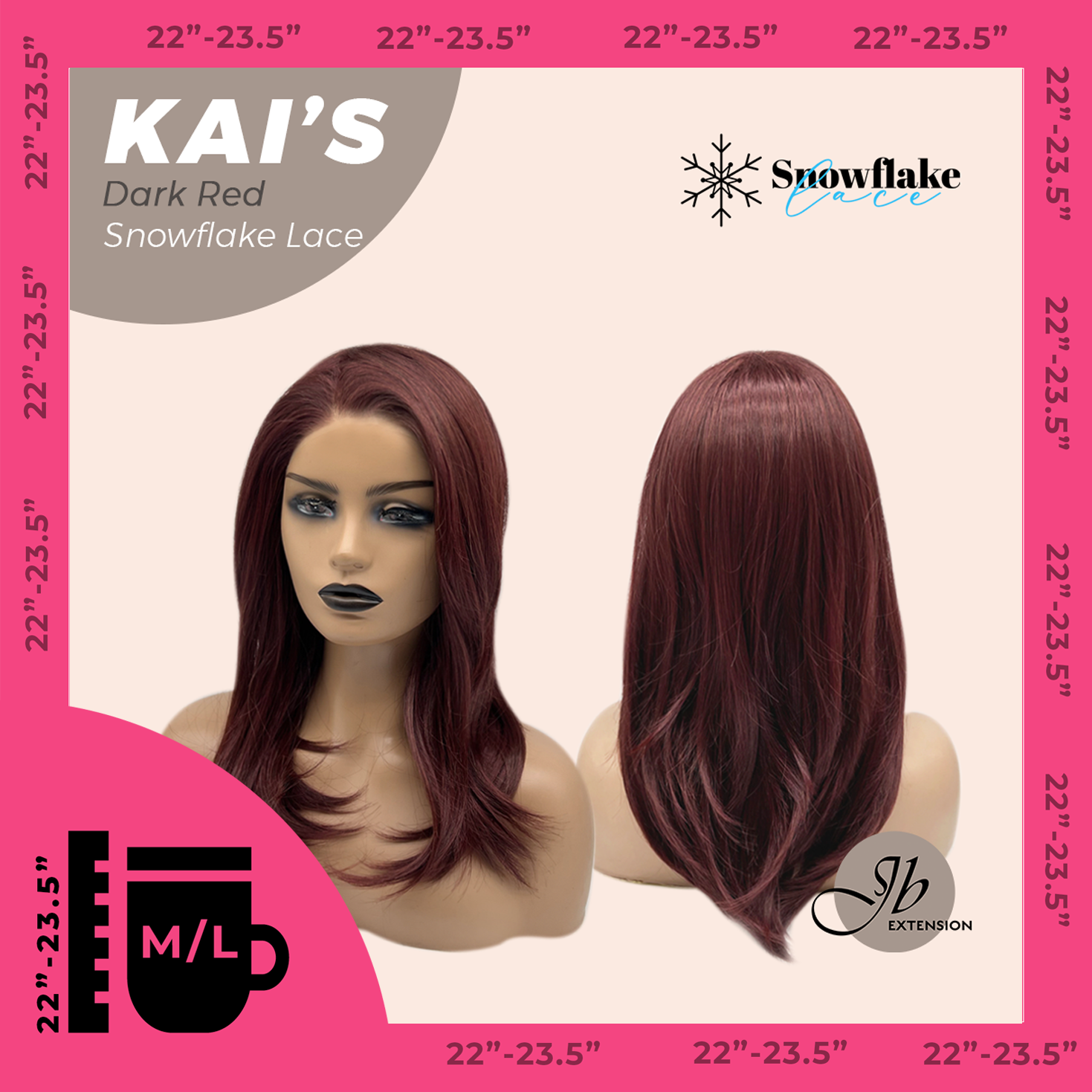 JBEXTENSION 18 Inches Dark Red Pre-Cut Snowflake Lace Frontlace Glueless Wig KAI'S DARK RED【PERMATEASE】【BENDY EAR TABS】- M/L