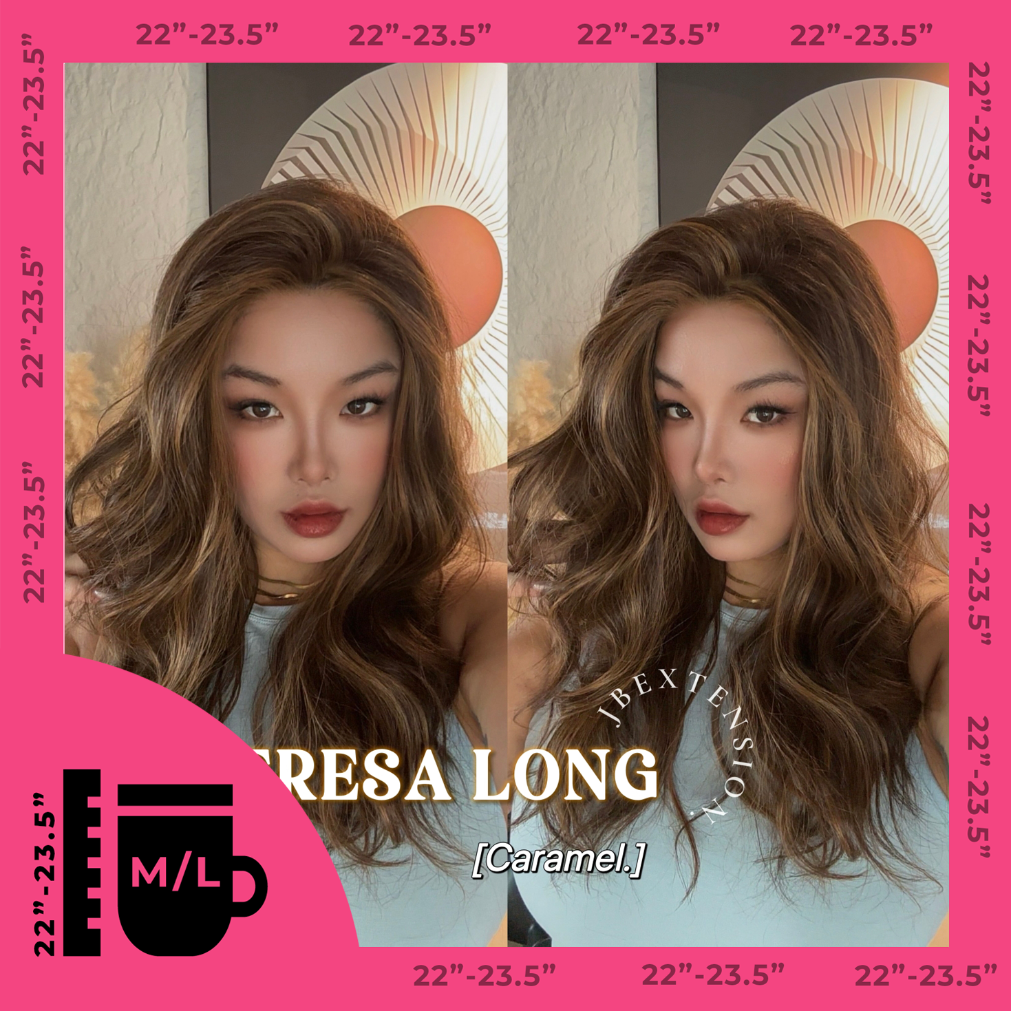 JBEXTENSION 22 Inches Long Caramel Pre-Cut Snowflake Lace Frontlace Glueless Wig TERESA LONG CARAMEL【PERMATEASE】【BENDY EAR TABS】- M/L