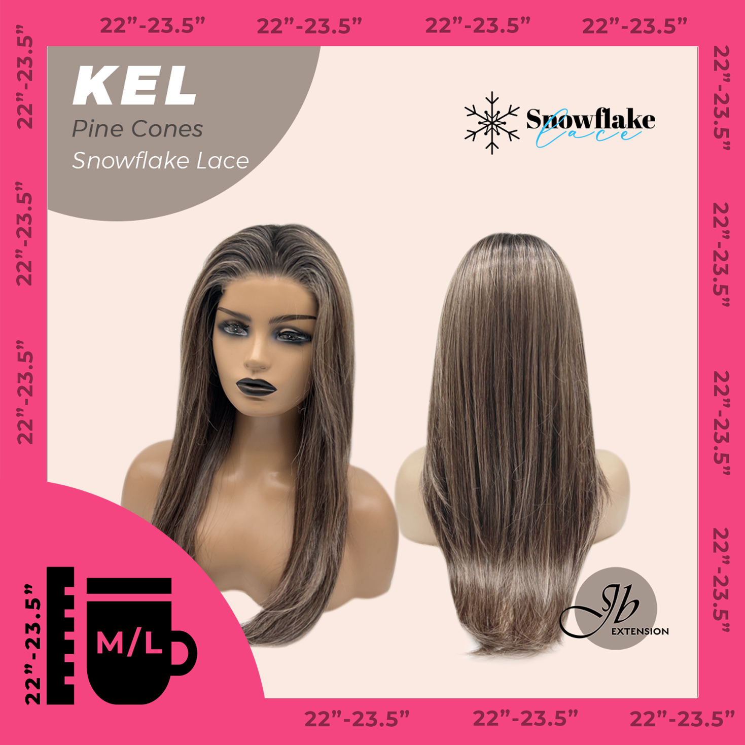 JBEXTENSION 22 Inches Pine Cones Pre-Cut Snowflake Lace Frontlace Glueless Wig KEL PINE CONES【PERMATEASE】【BENDY EAR TABS】- M/L
