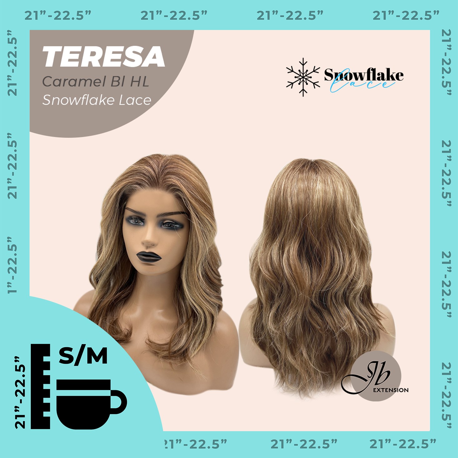 JBEXTENSION 18 Inches Caramel Blonde Highlight Pre-Cut Snowflake Lace Frontlace Glueless Wig TERESA CARAMEL BLONDE HIGHLIGHT【PERMATEASE】【BENDY EAR TABS】