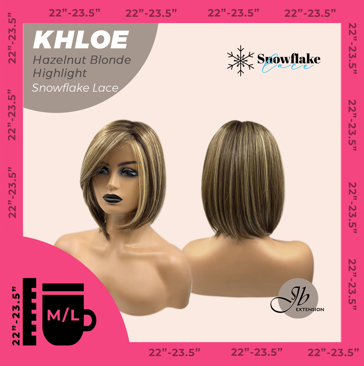 JBEXTENSION 12 Inches Bob Cut Hazelnut Blonde Highlight Pre-Cut Snowflake Lace Frontlace Glueless Wig KHLOE HAZELNUT【PERMATEASE】【BENDY EAR TABS】- M/L