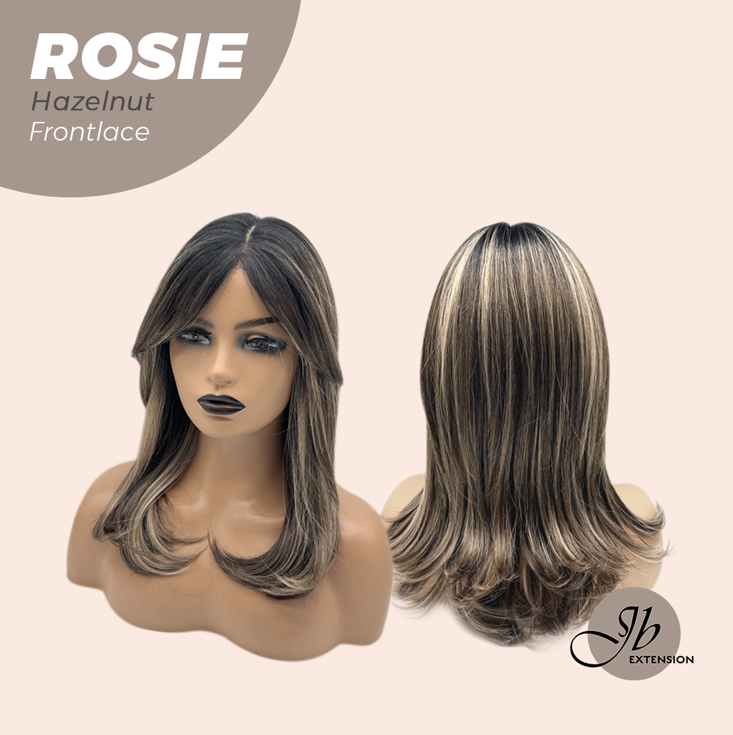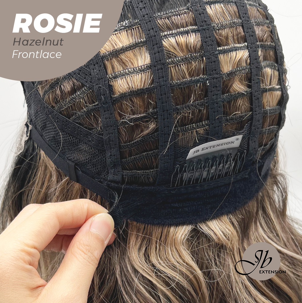 JBEXTENSION 16 Inches Hazelnut Curly Women Pre-Cut Frontlace Glueless Wig with Bangs ROSIE HAZELNUT