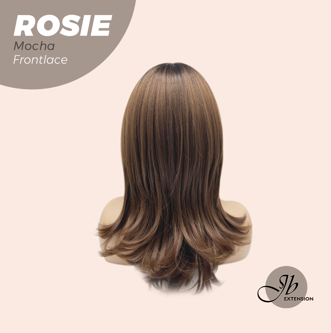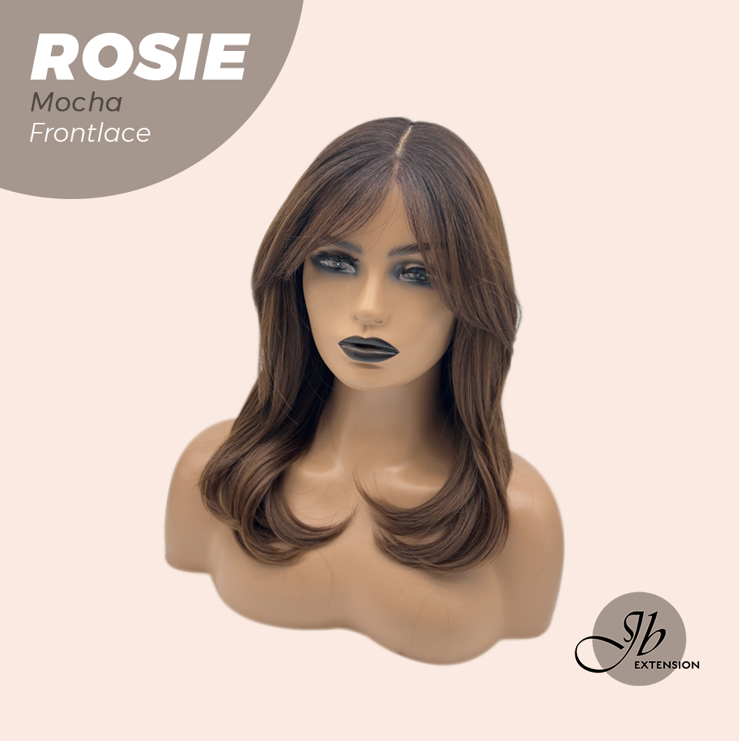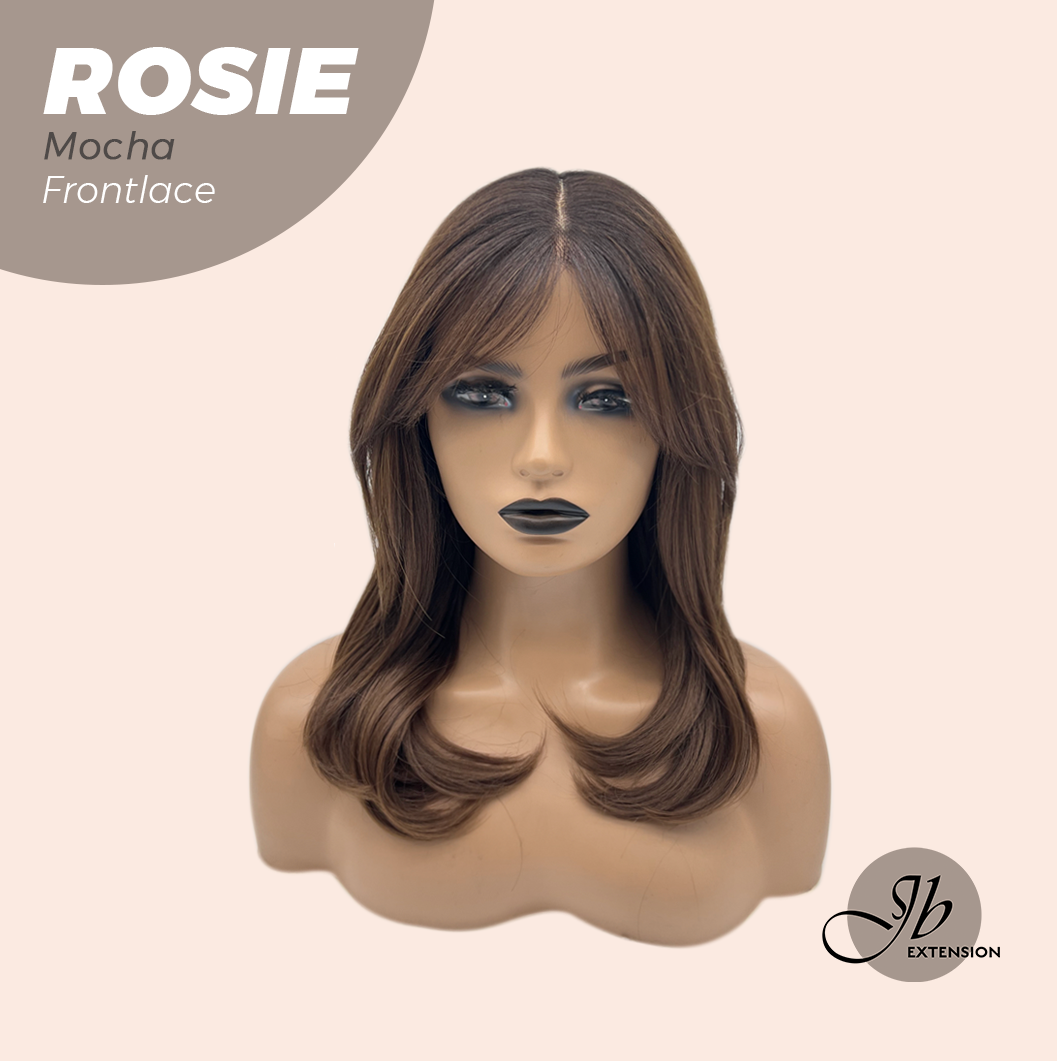 JBEXTENSION 16 Inches Mocha Curly Women Pre-Cut Frontlace Glueless Wig with Bangs ROSIE MOCHA