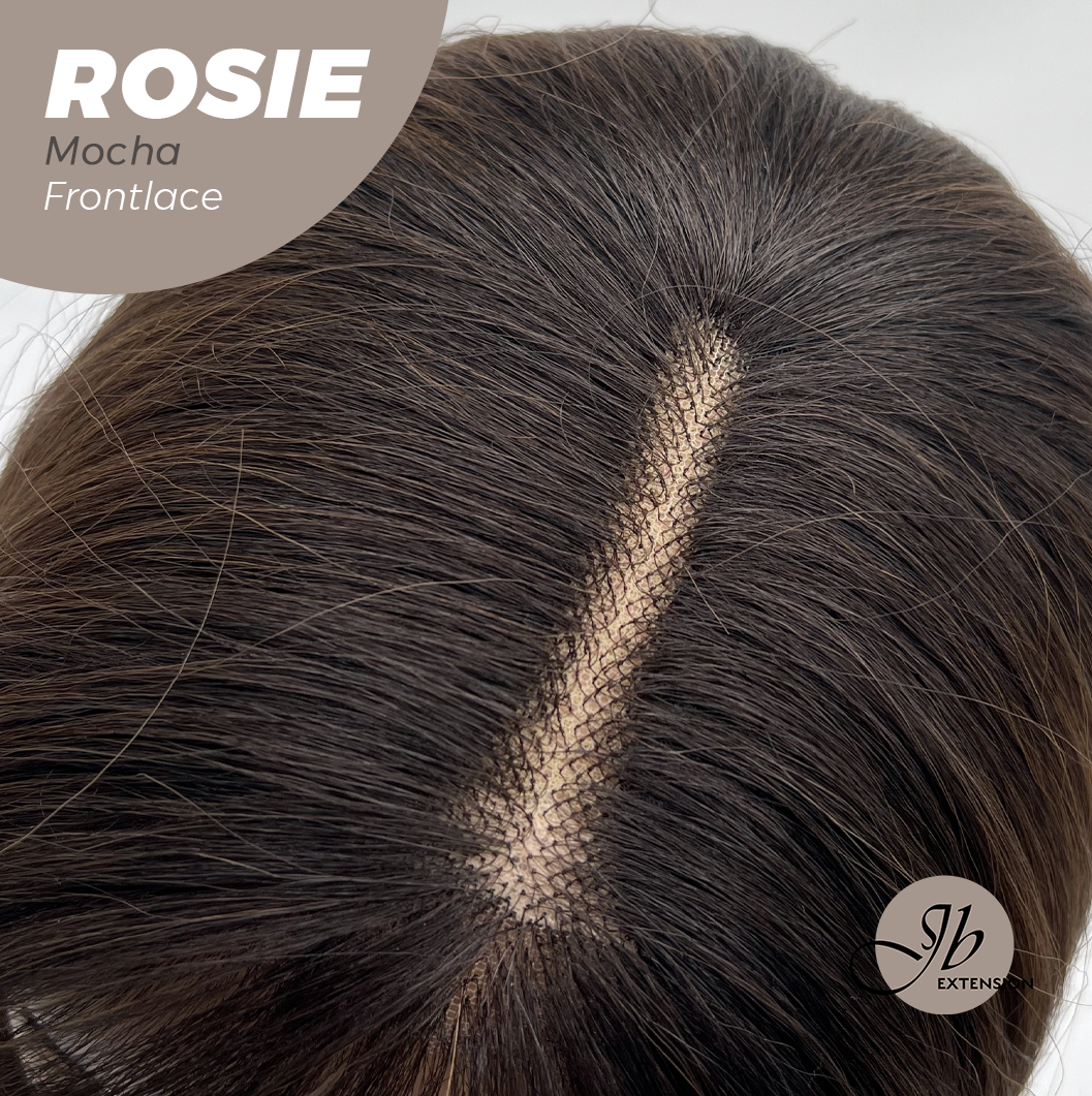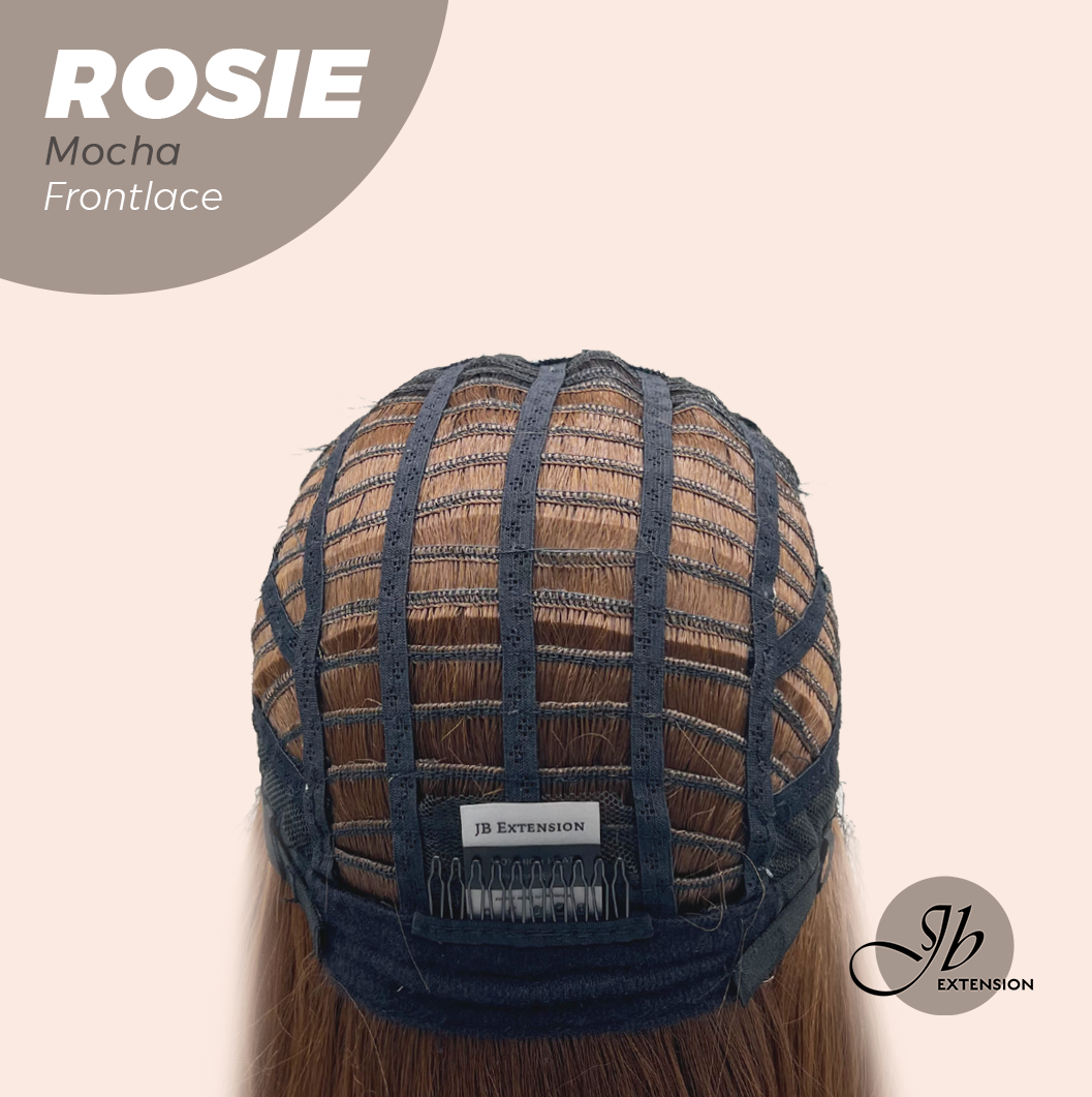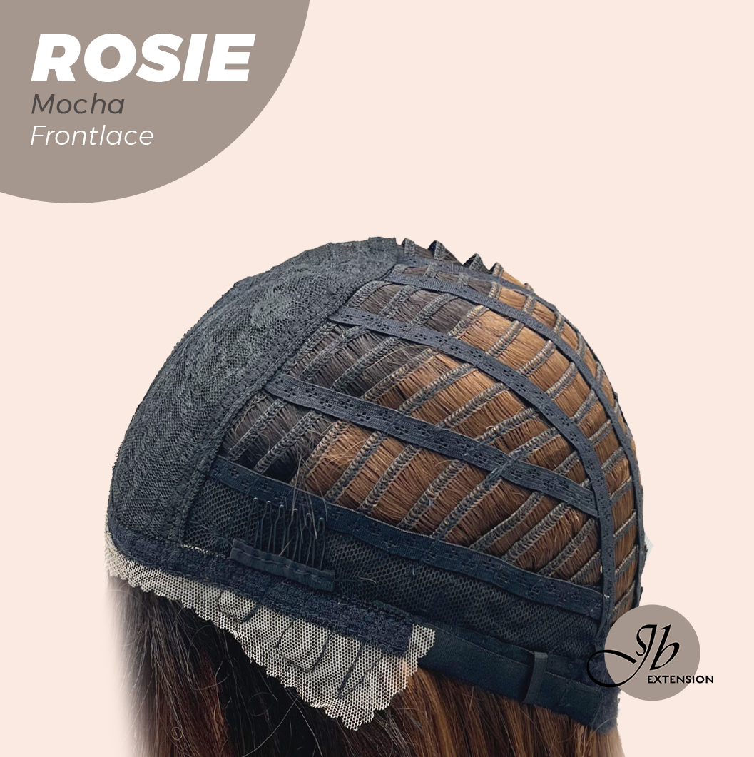 JBEXTENSION 16 Inches Mocha Curly Women Pre-Cut Frontlace Glueless Wig with Bangs ROSIE MOCHA