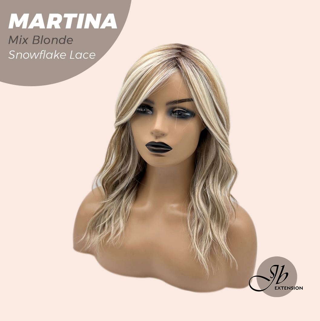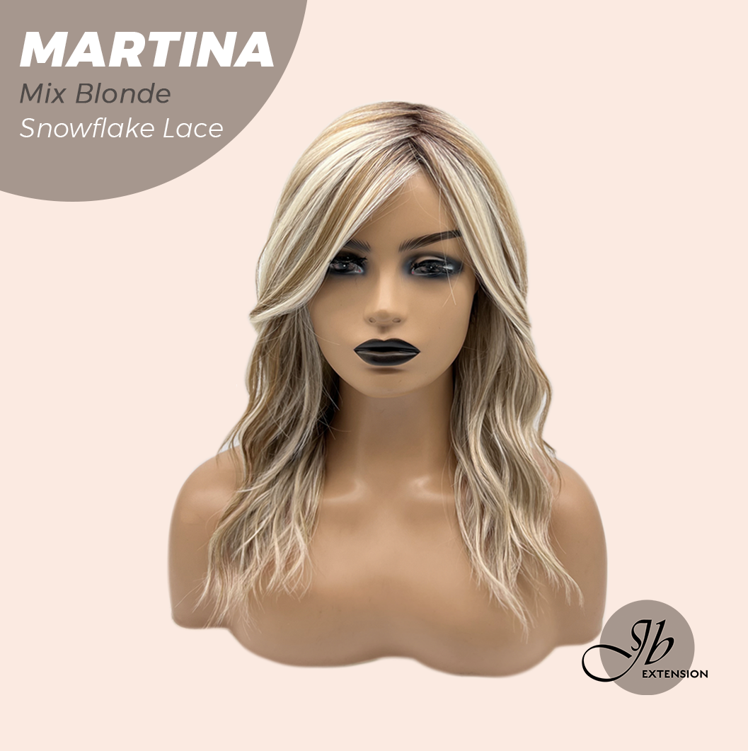 JBEXTENSION 17 Inches Wave Mix Blonde Pre-Cut Side Part Snowflake Lace Frontlace Glueless Wig MARTINA MIX BLONDE【BENDY EAR TABS】