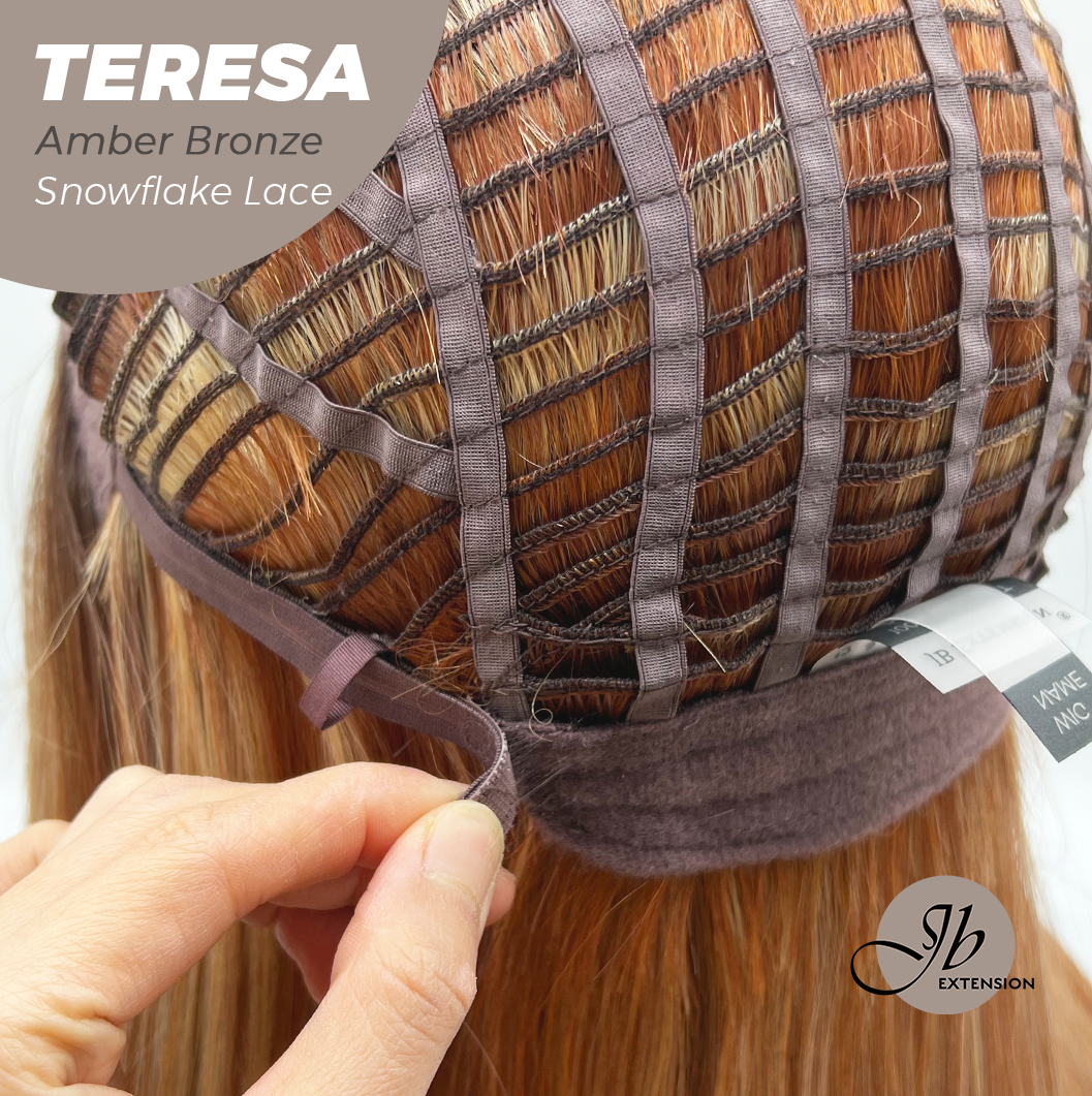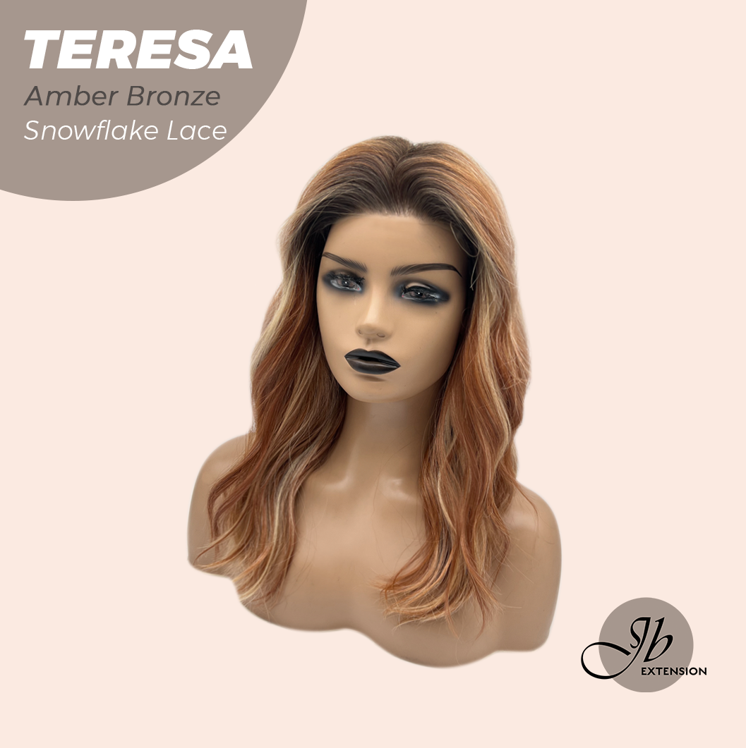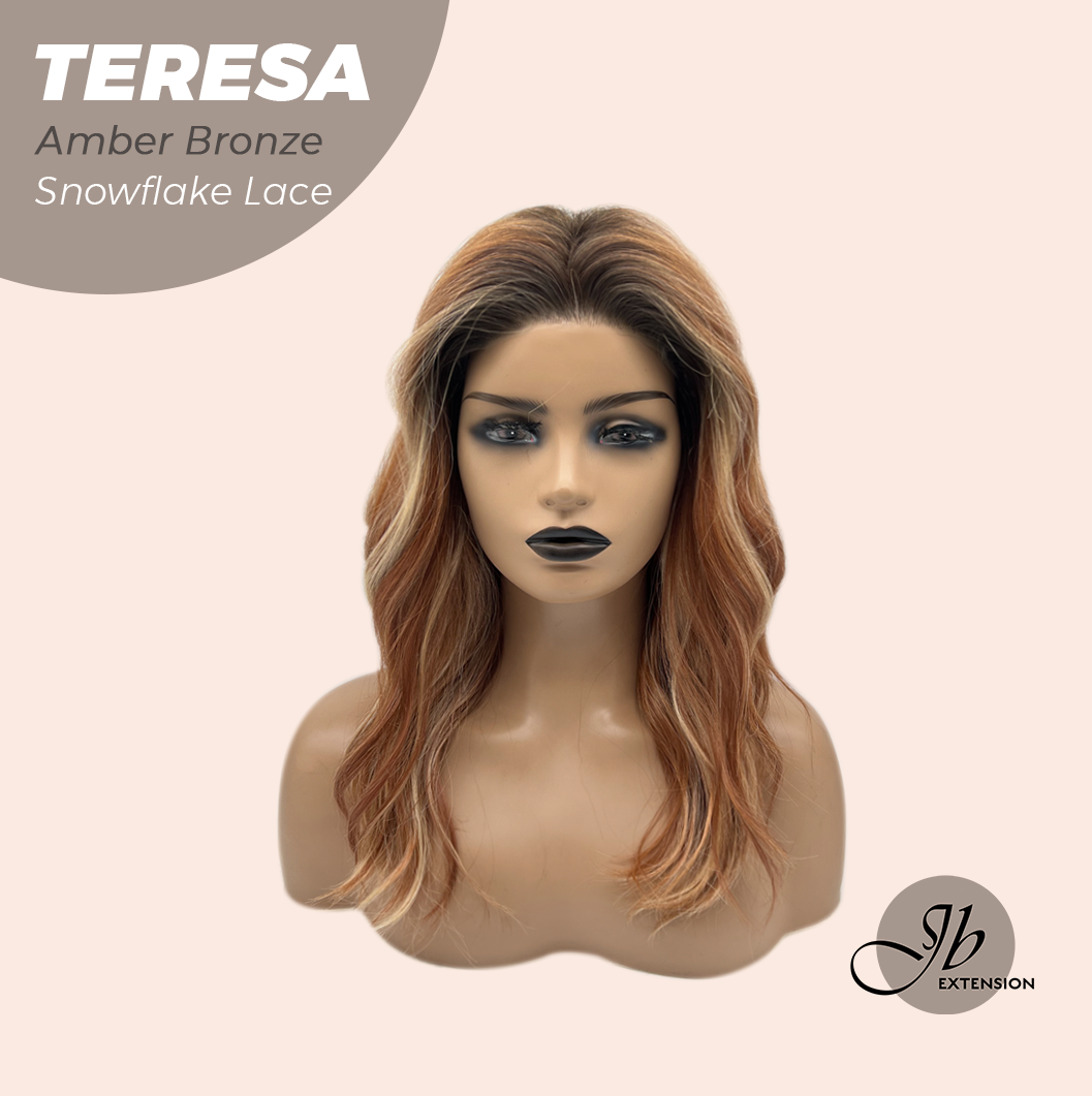 JBEXTENSION 18 Inches Amber Bronze Pre-Cut Snowflake Lace Frontlace Glueless Wig TERESA AMBER BRONZE【PERMATEASE】【BENDY EAR TABS】- M/L