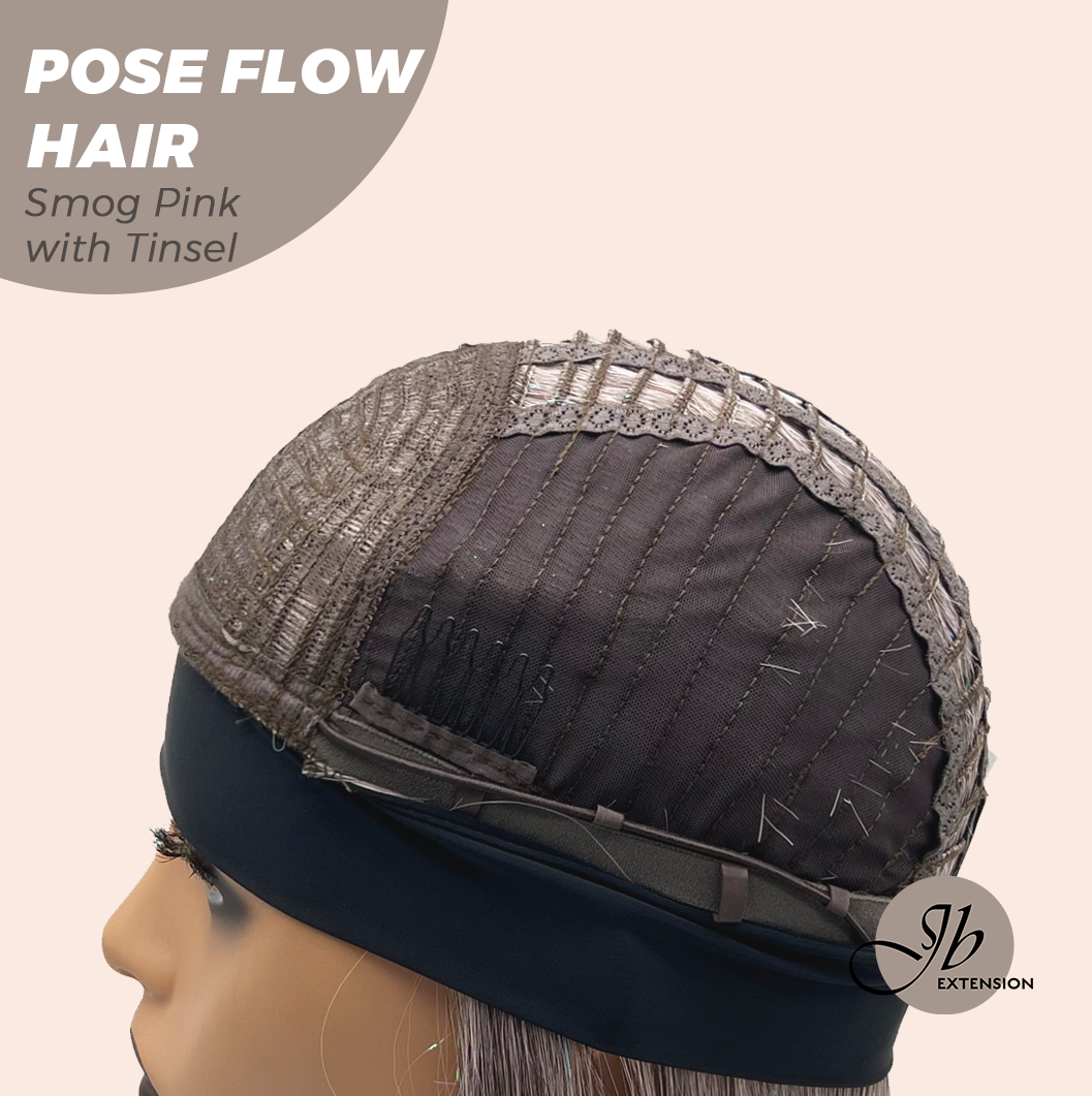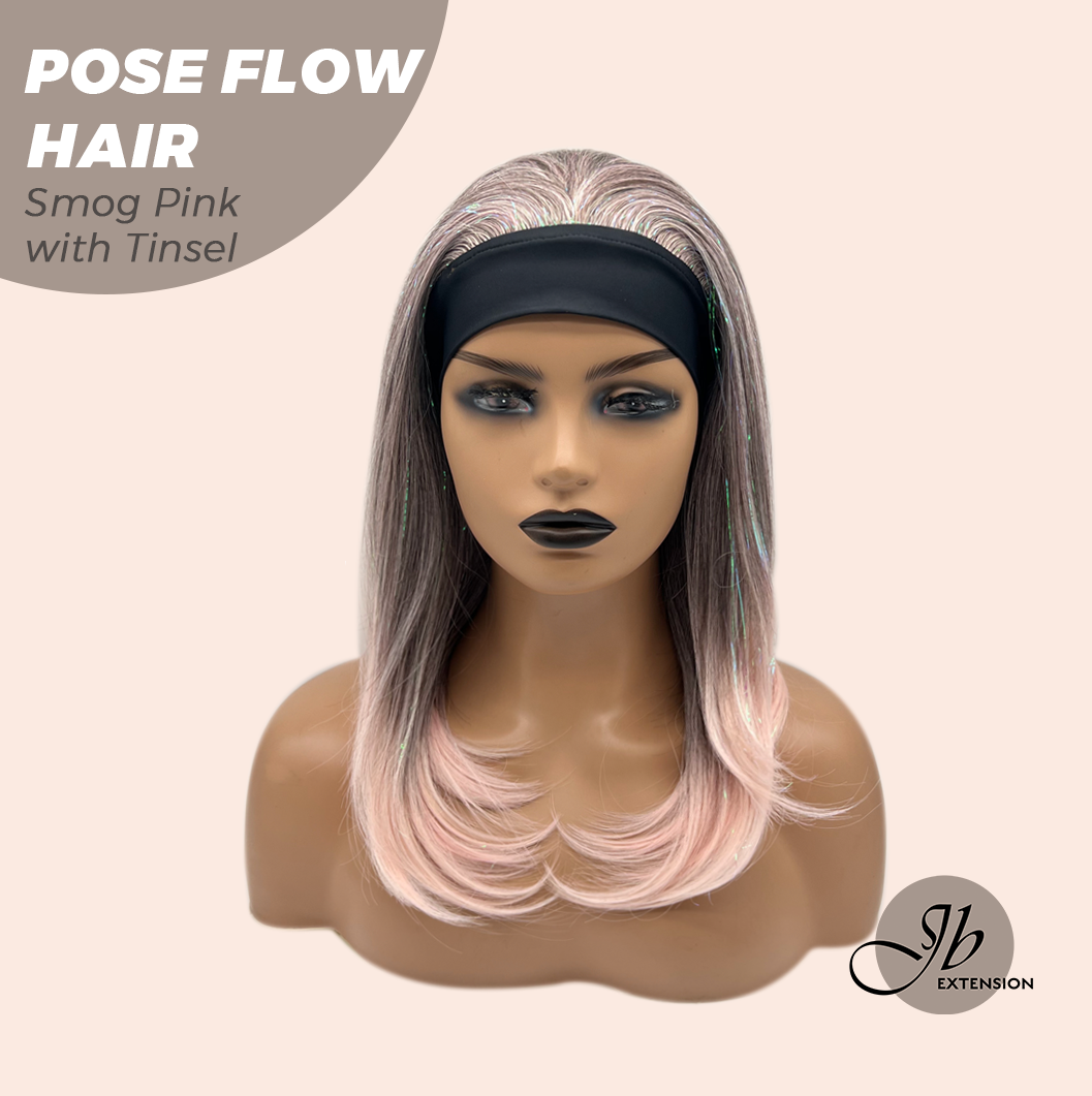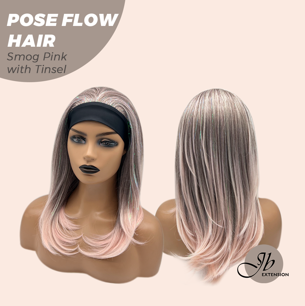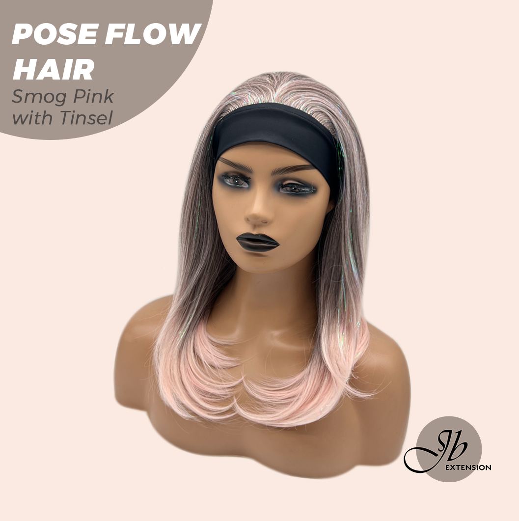 JBEXTENSION 18 Inches Smog Pink with Tinsel Headband Wig POSE FLOW HAIR - SMOG PINK WITH TINSEL
