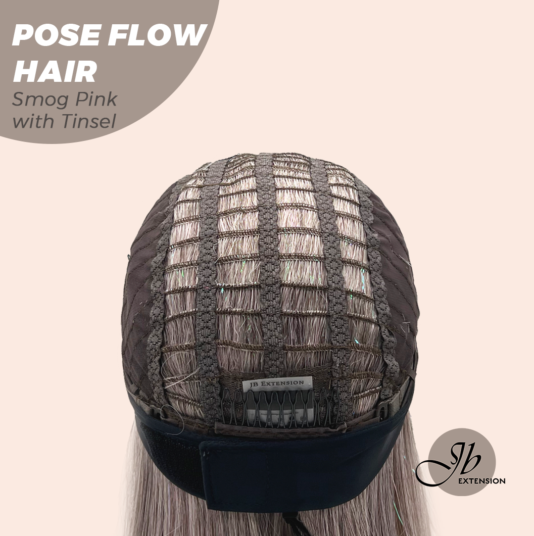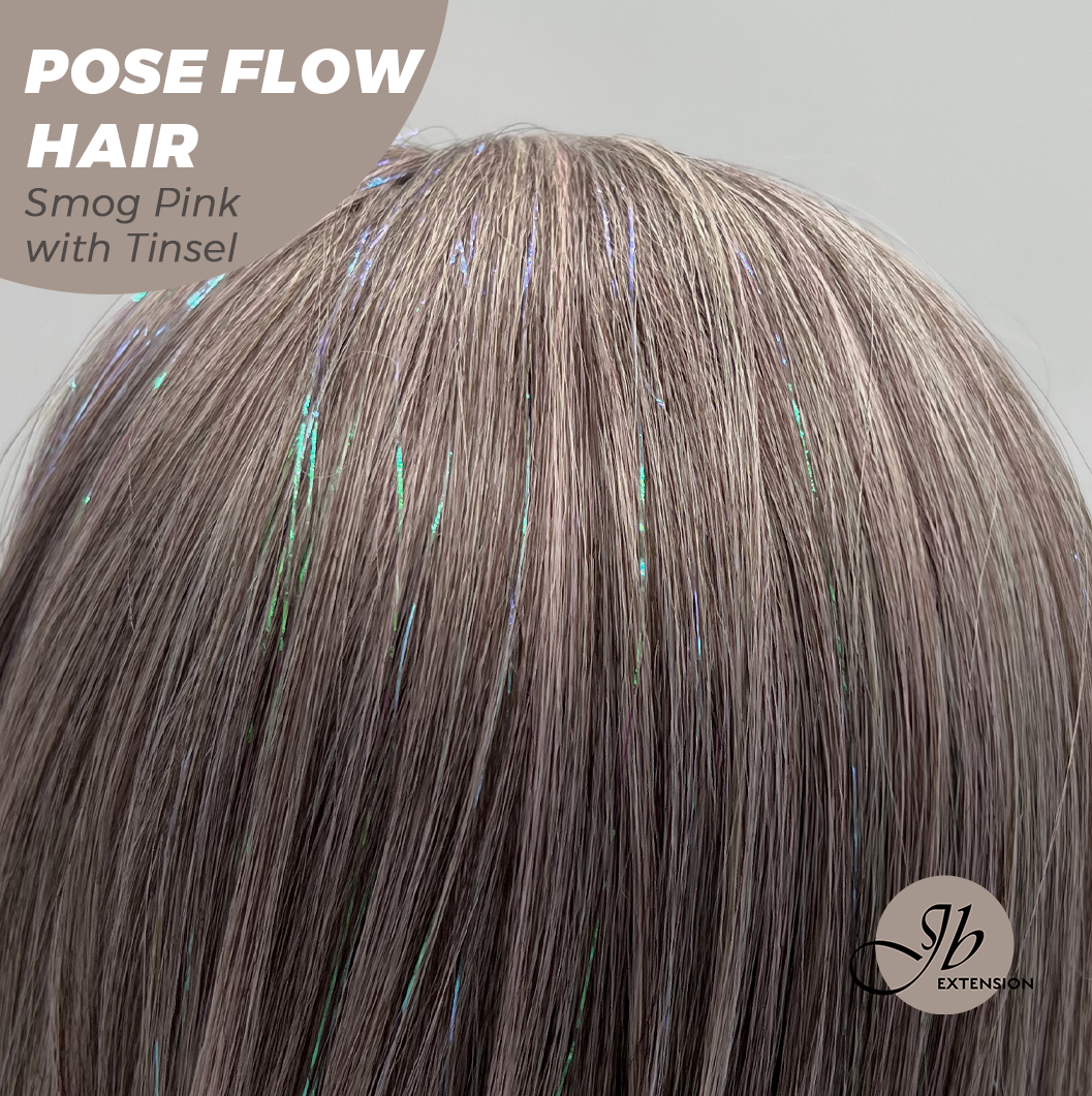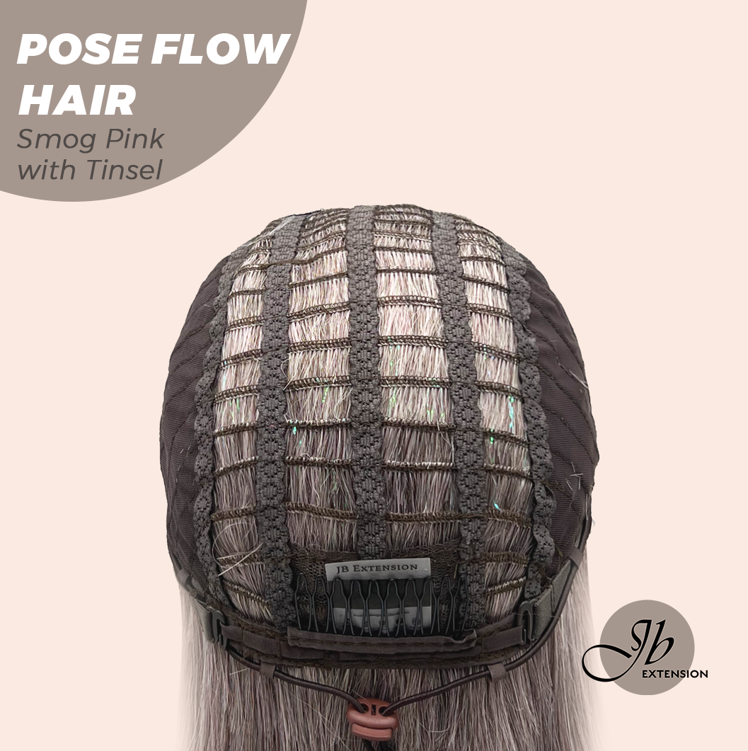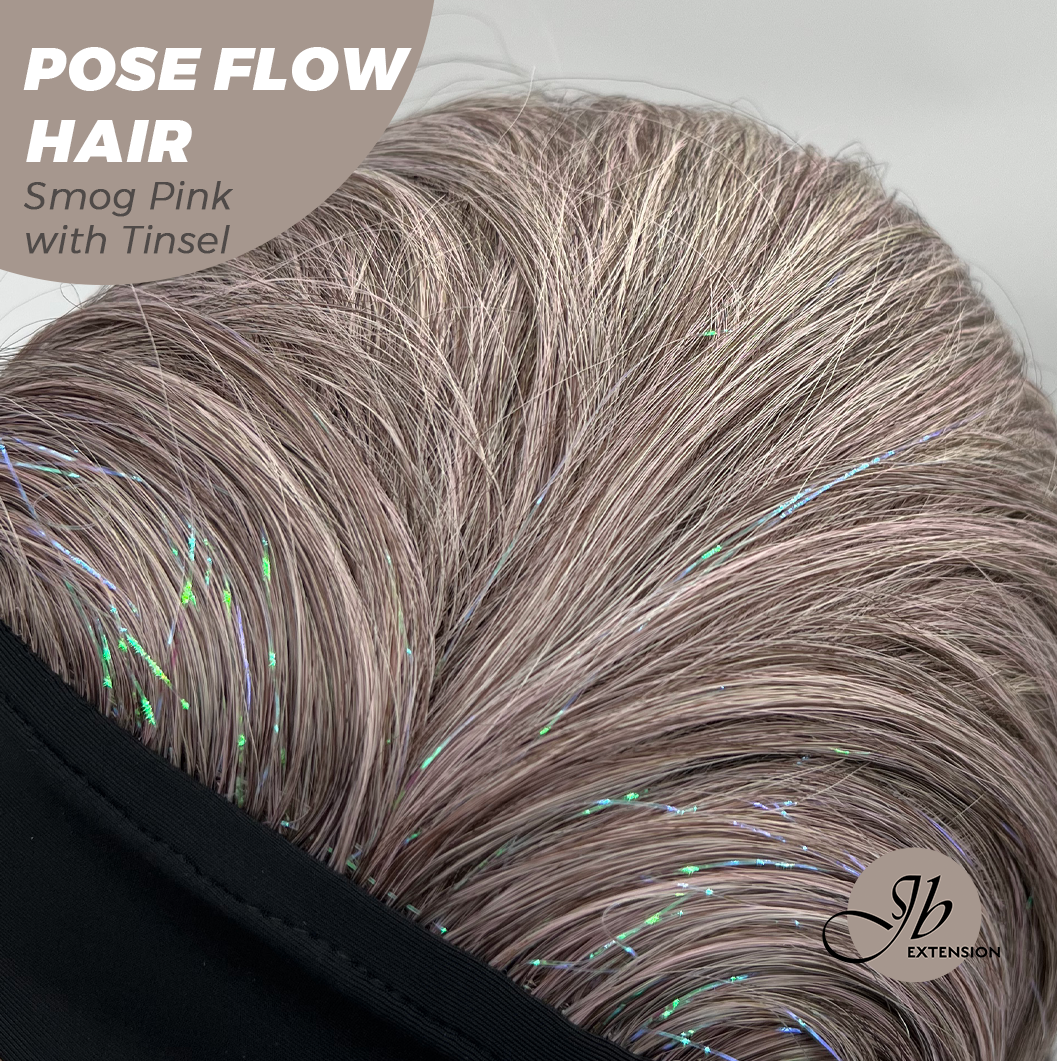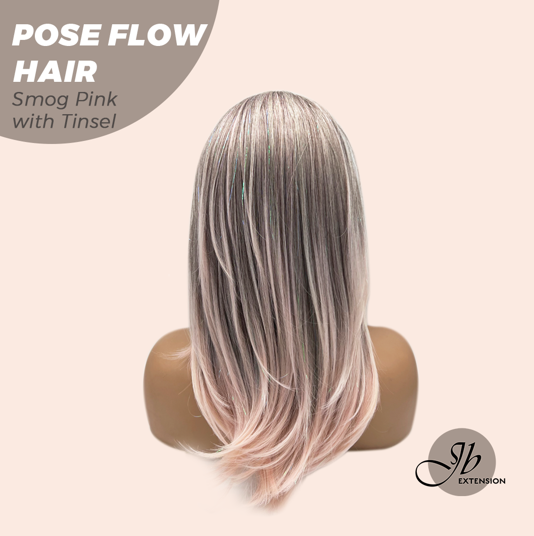 JBEXTENSION 18 Inches Smog Pink with Tinsel Headband Wig POSE FLOW HAIR - SMOG PINK WITH TINSEL
