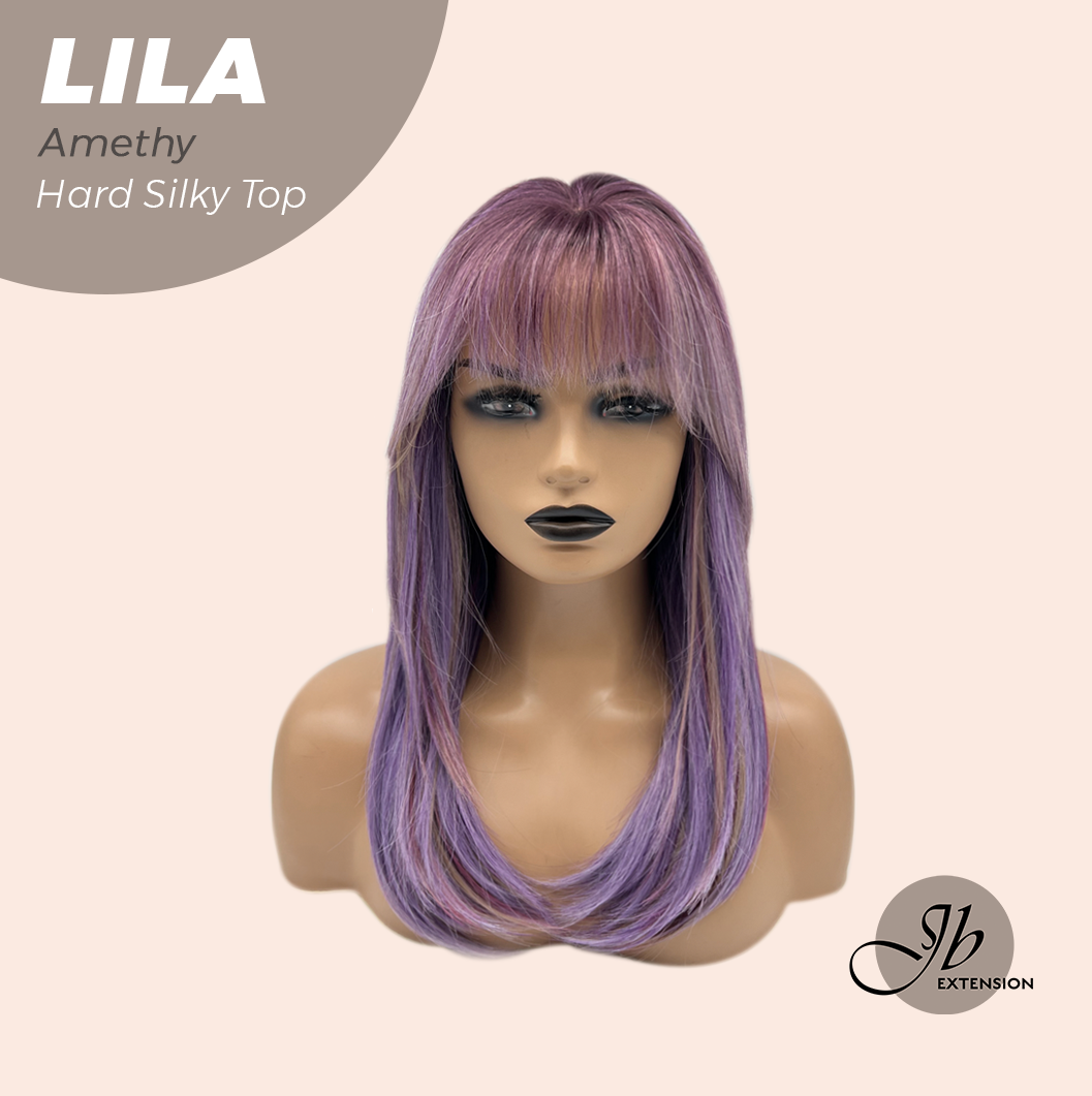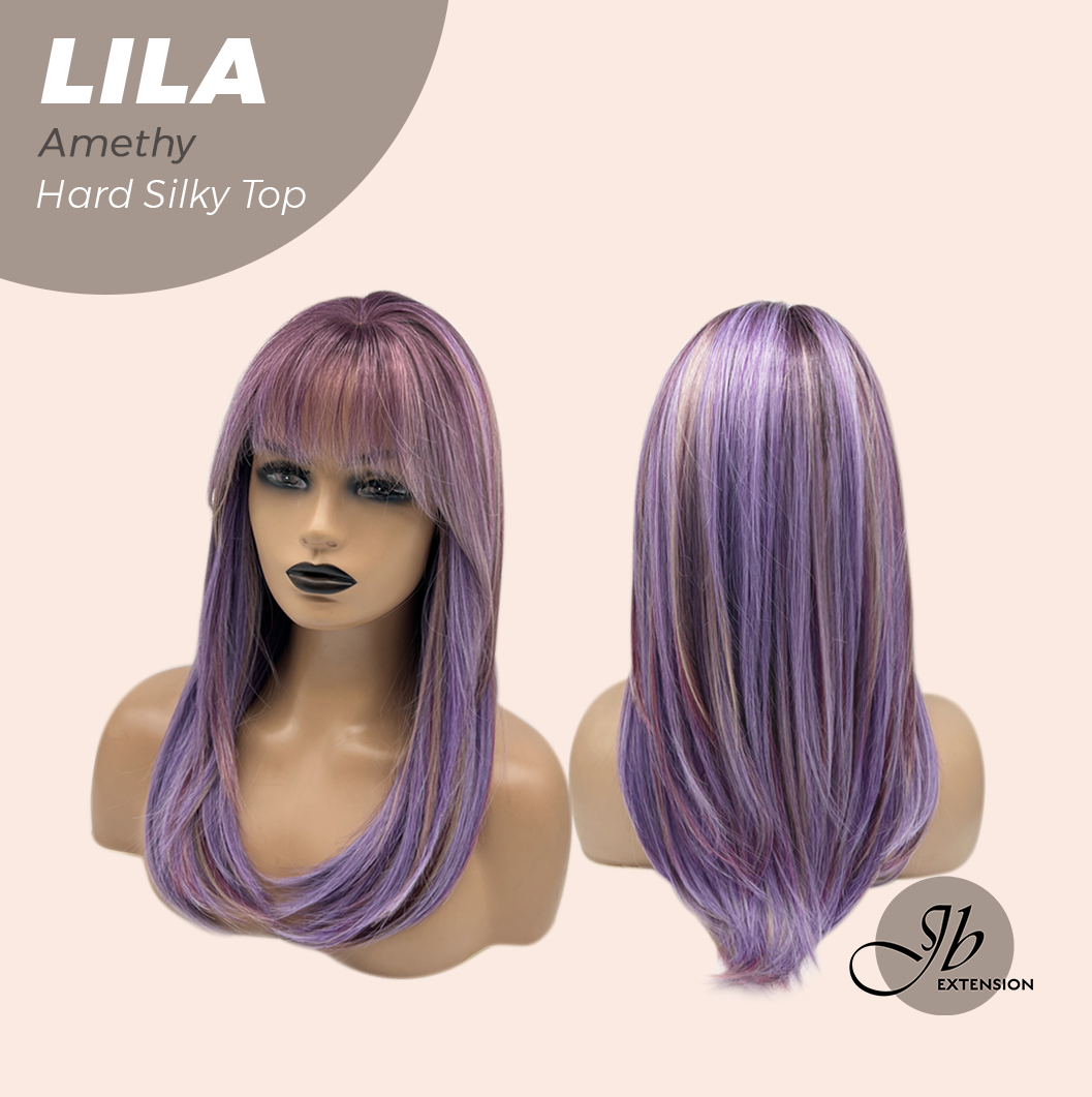 JBEXTENSION 20 Inches Scalpiana Amethy Wolf Cut 3.5X4 Hard Silky Top Natural Scalp Effect Wig With Bangs LILA AMETHY