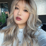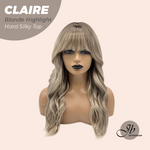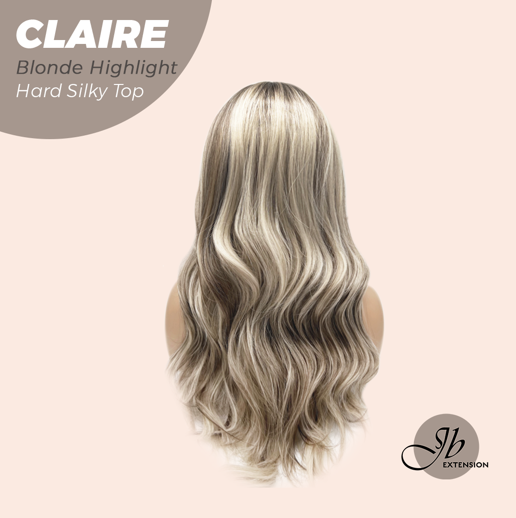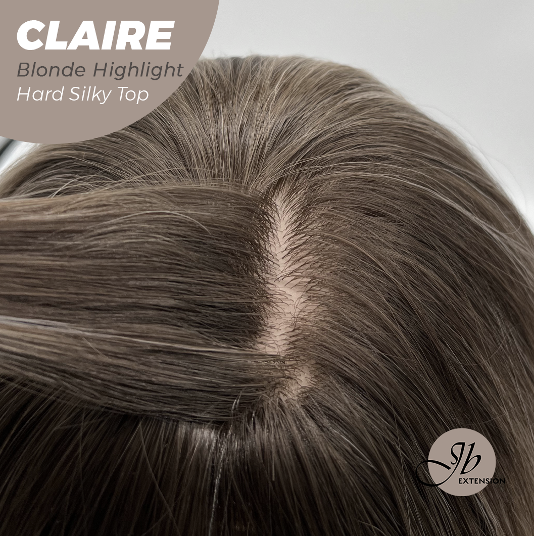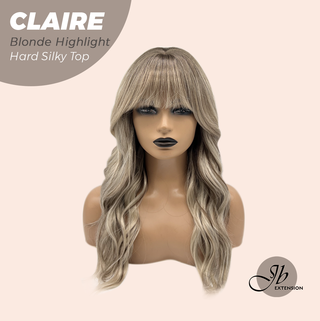 JBEXTENSION 22 Inches Scalpiana Blonde Highlight 3.5X4 Hard Silky Top Natural Scalp Effect Women Wig With Bangs CLAIRE SILKY TOP BLONDE HIGHLIGHT