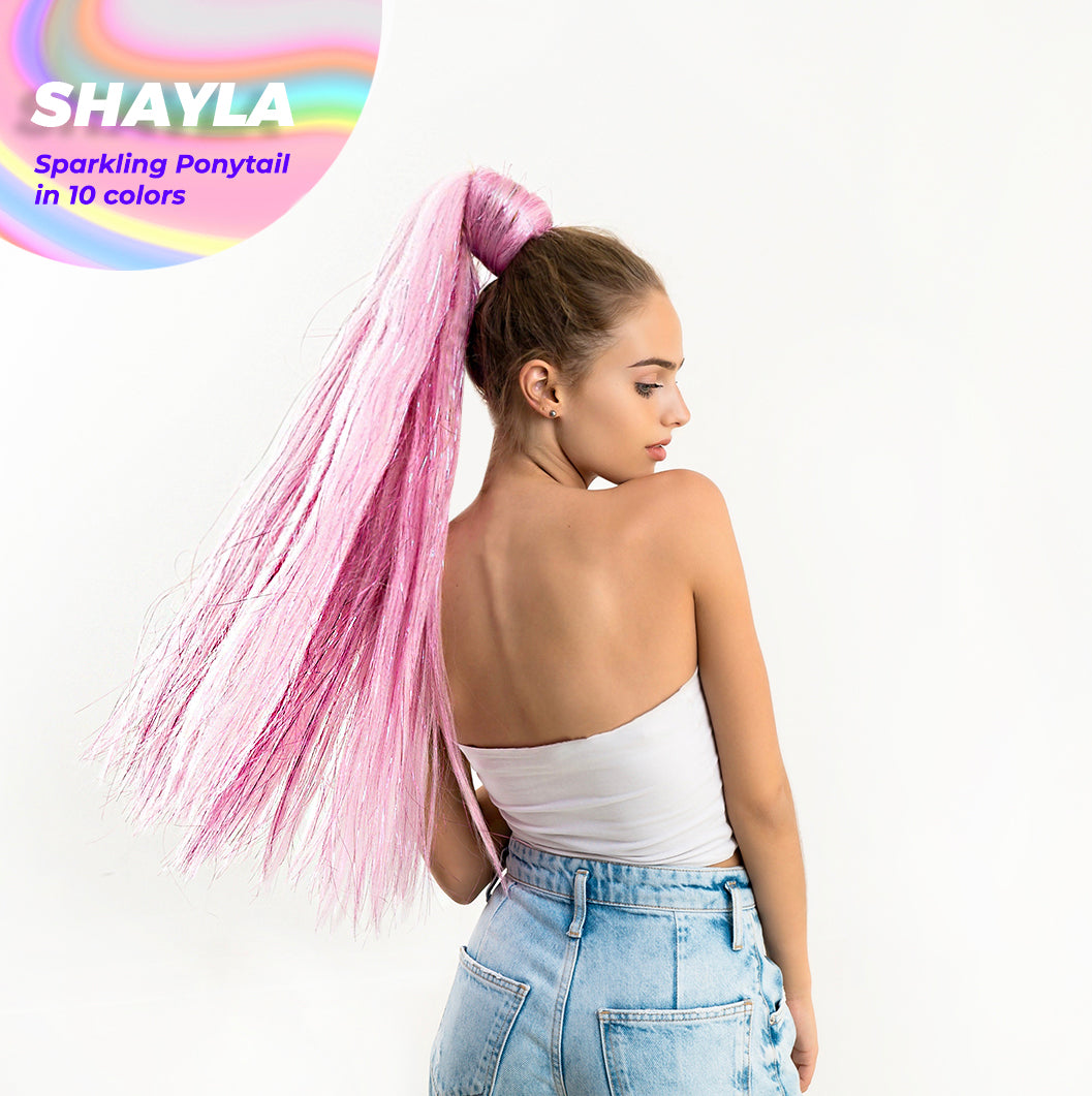- The glitter?ponytail extensions come in 10 colors.