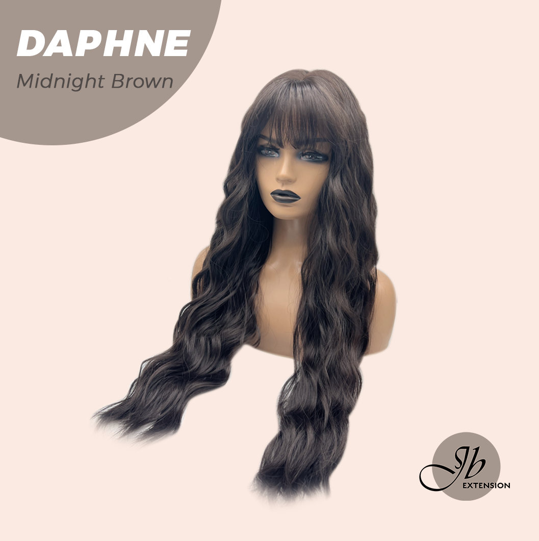 JBEXTENSION 29 Inches Long Body Wave Midnight Brown(Black/Brown) Wig With Bangs DAPHNE MIDNIGHT BROWN