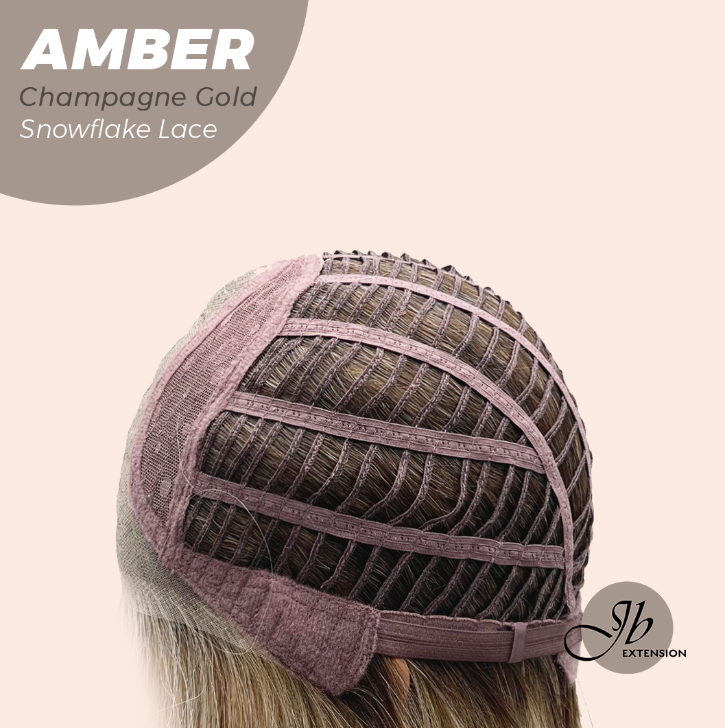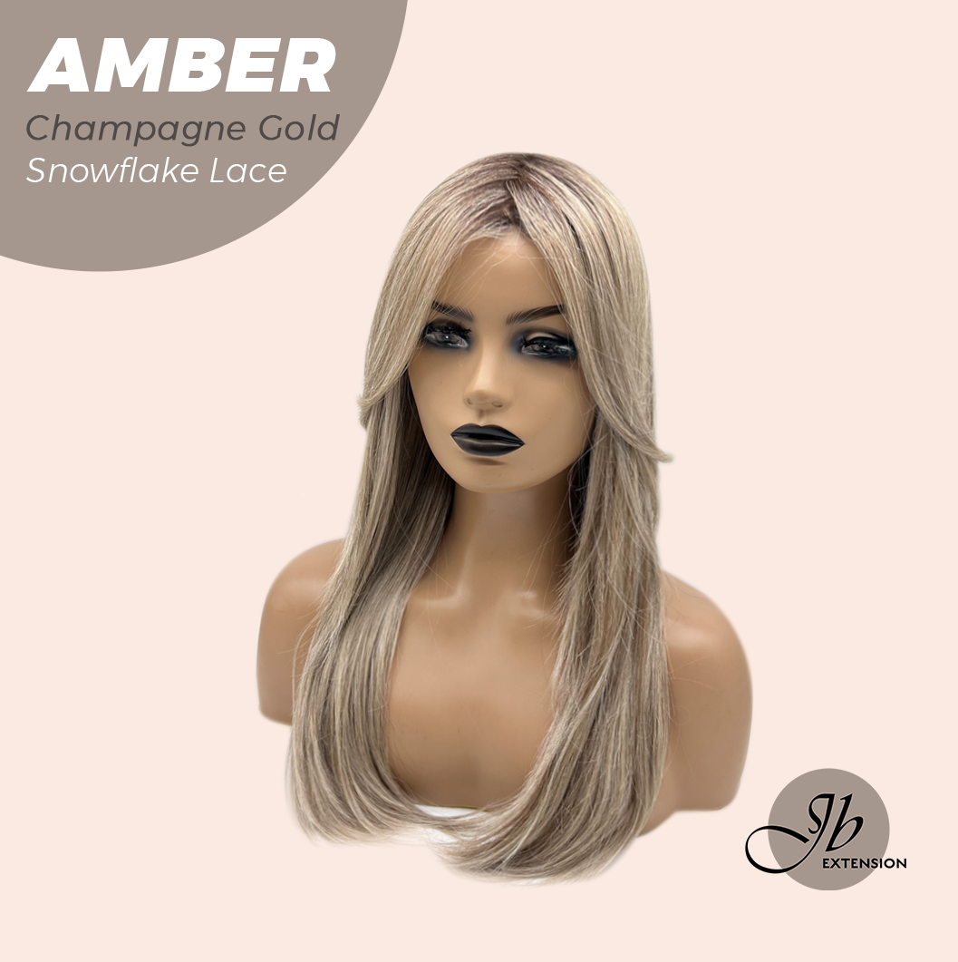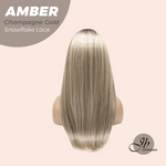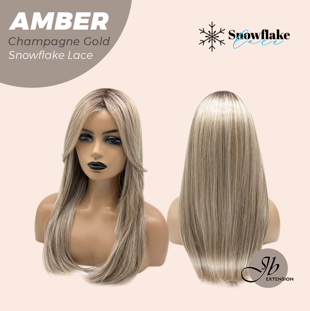 JBEXTENSION 21 Inches Straight Champagne Gold Pre-Cut T Part Snowflake Lace Frontlace Glueless Wig AMBER CHAMPAGNE GOLD【BENDY EAR TABS】