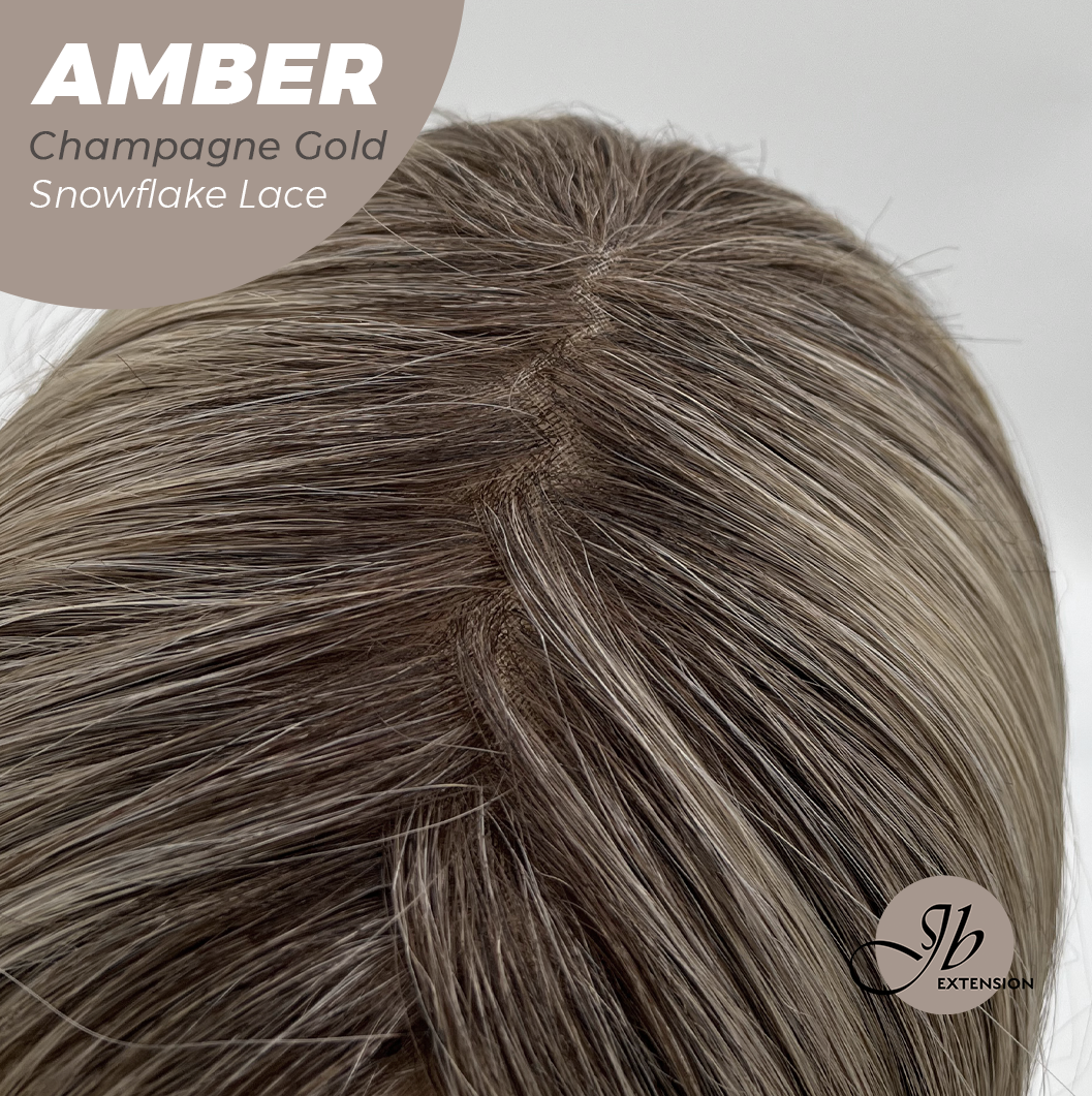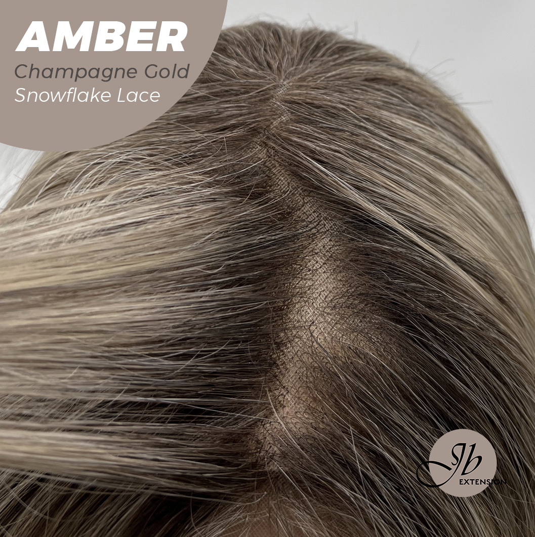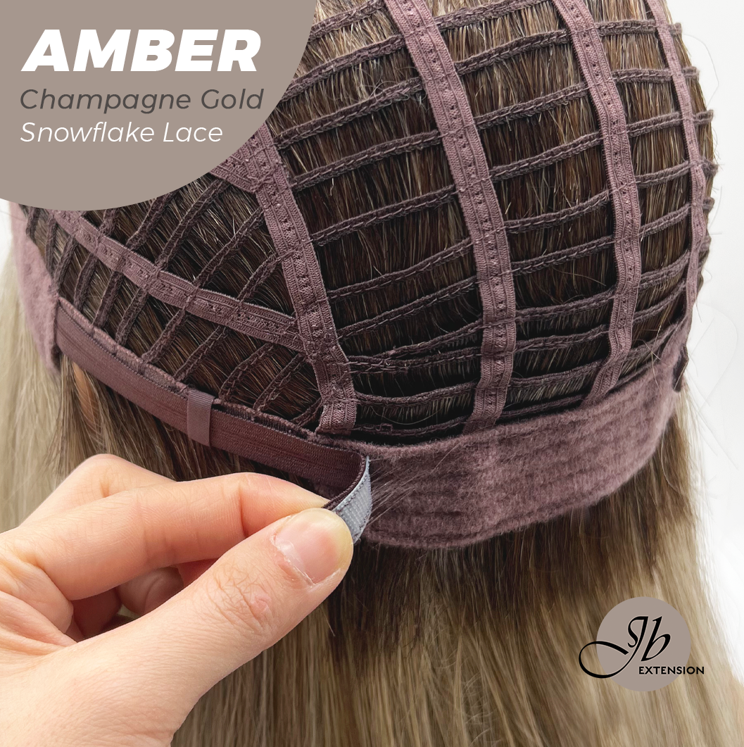 JBEXTENSION 21 Inches Straight Champagne Gold Pre-Cut T Part Snowflake Lace Frontlace Glueless Wig AMBER CHAMPAGNE GOLD【BENDY EAR TABS】