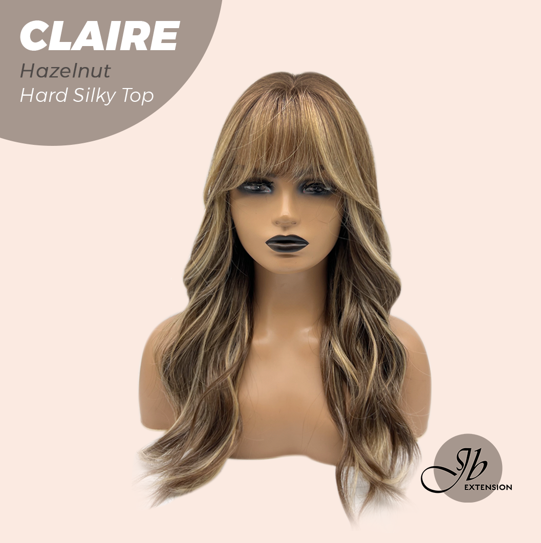 JBEXTENSION 22 Inches Scalpiana Hazelnut 3.5X4 Hard Silky Top Natural Scalp Effect Women Wig With Bangs CLAIRE SILKY TOP HAZELNUT