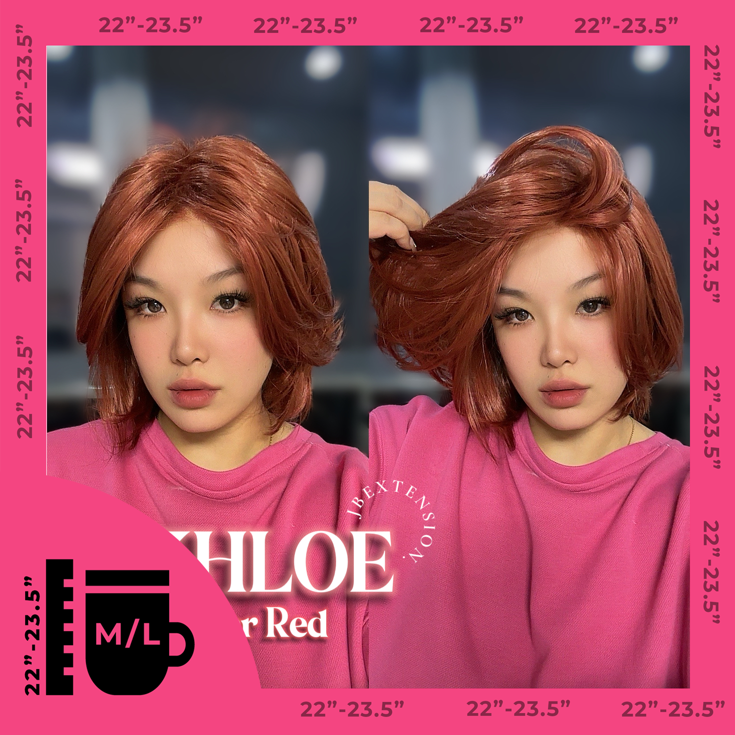 JBEXTENSION 12 Inches Bob Cut Copper Red Pre-Cut Snowflake Lace Frontlace Glueless Wig KHLOE COPPER RED【PERMATEASE】【BENDY EAR TABS】- M/L