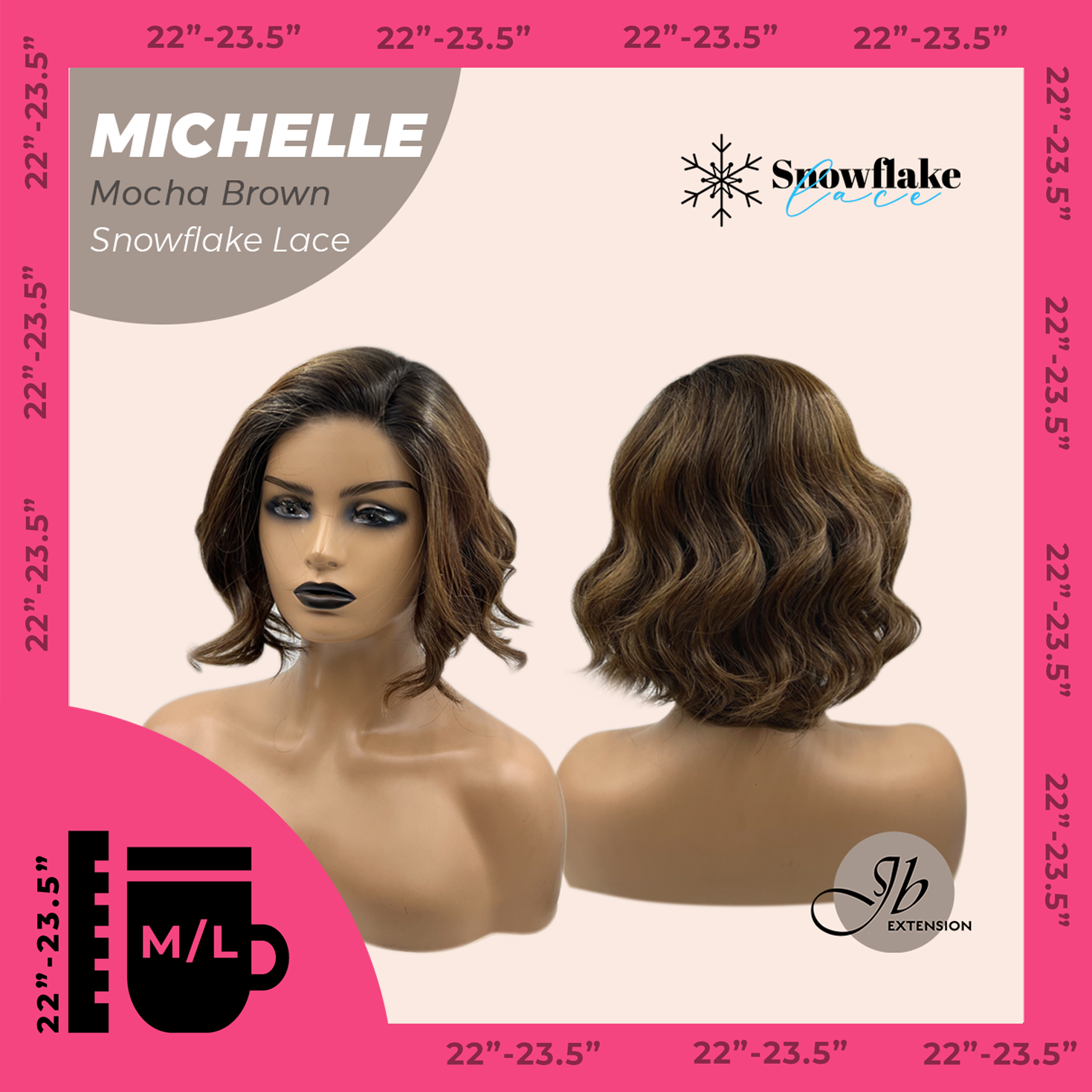 JBEXTENSION 10 Inches Mocha Brown Pre-Cut Side Part Snowflake Lace Frontlace Glueless Wig MICHELLE MOCHA BROWN【BENDY EAR TABS】- M/L