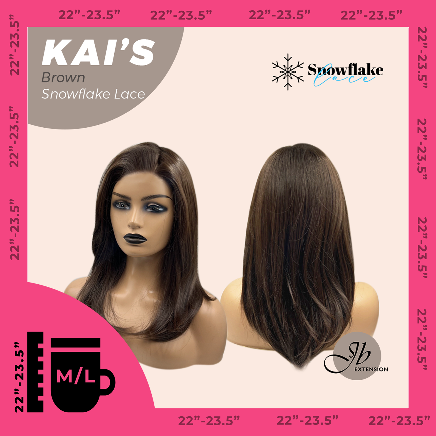 JBEXTENSION 18 Inches Brown Pre-Cut Snowflake Lace Frontlace Glueless Wig KAI'S BROWN【PERMATEASE】【BENDY EAR TABS】- M/L