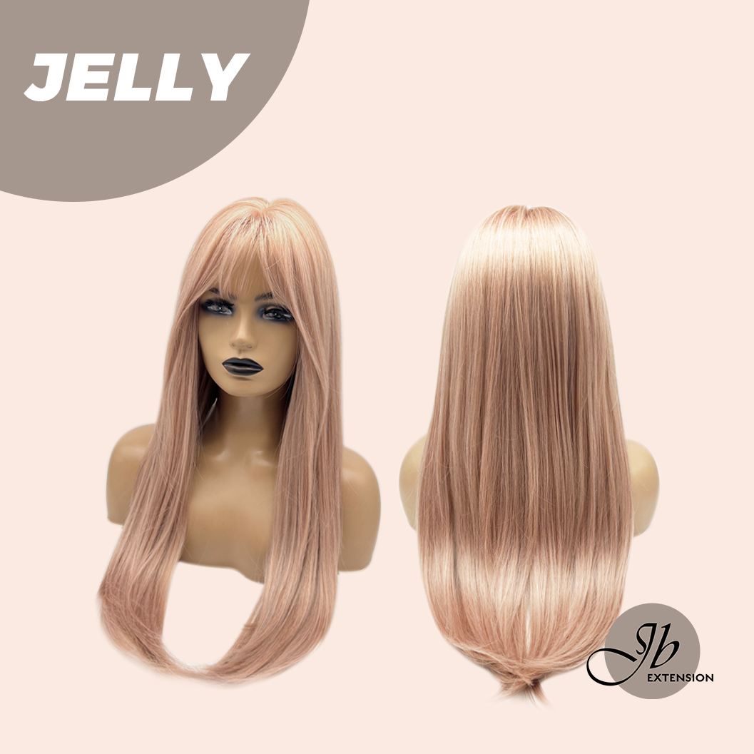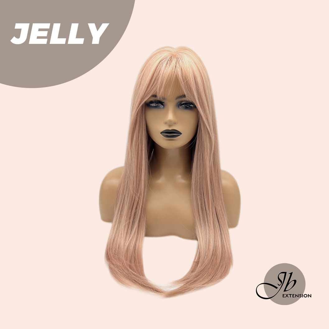 JBEXTENSION 24 Inches Long Straight Pink Wig with Bangs JELLY
