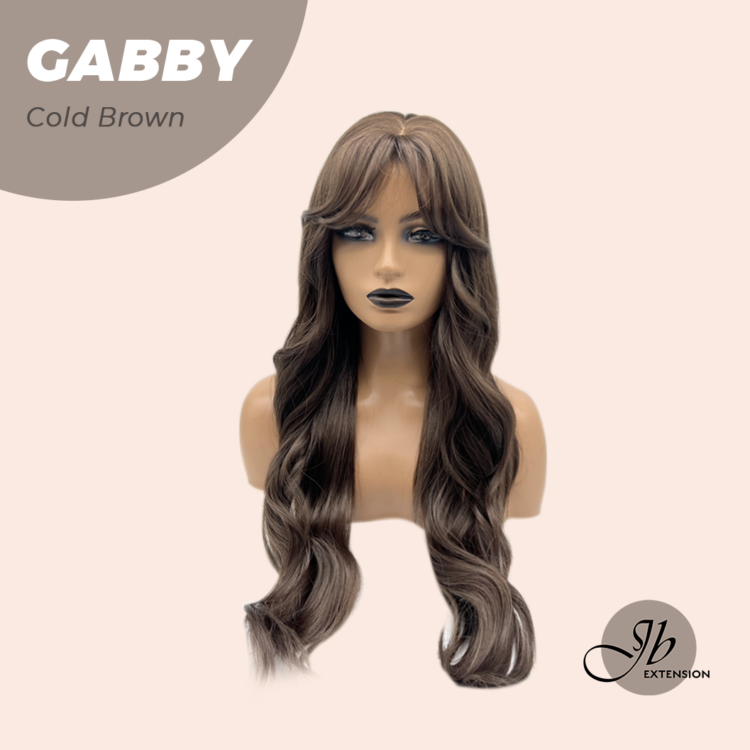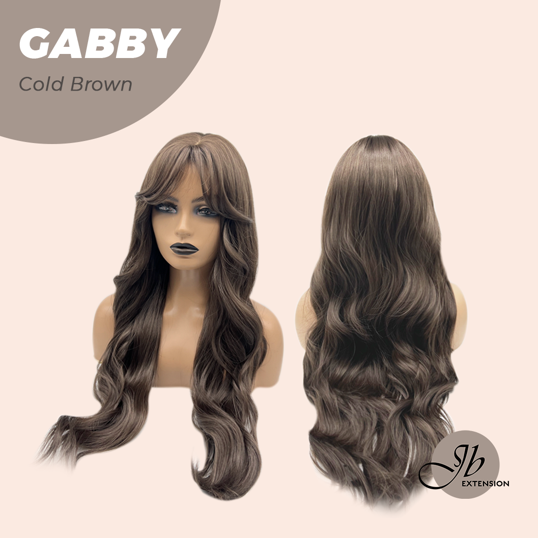 JBEXTENSION 27 Inches Long Curly Cold Brown Wig With Bangs GABBY COLD BROWN