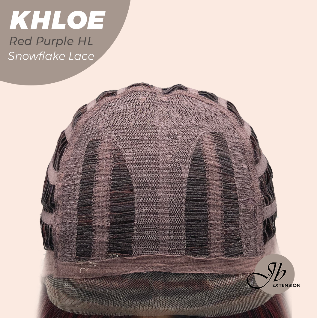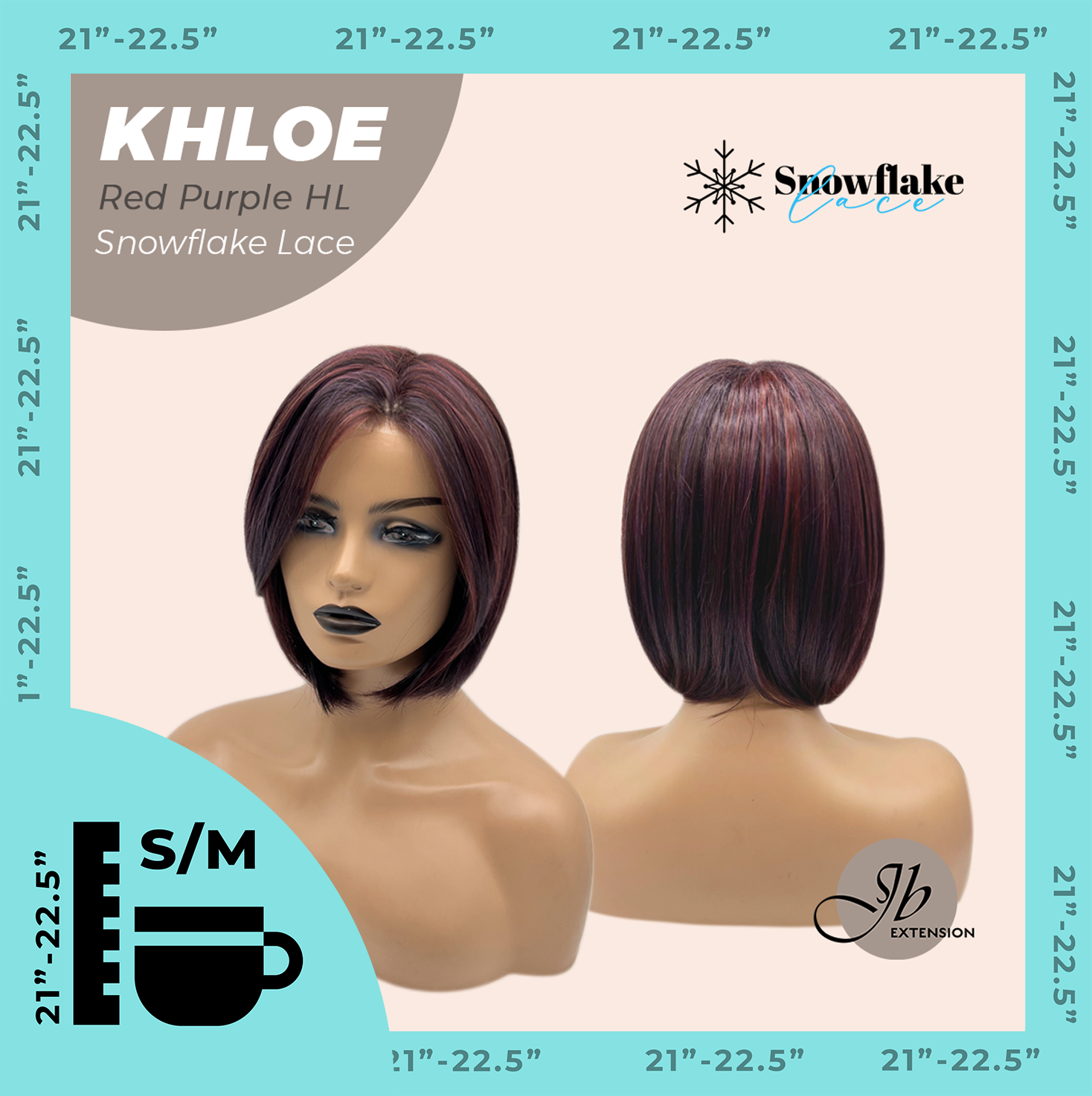 JBEXTENSION 12 Inches Bob Cut Red Purple Highlight Pre-Cut Snowflake Lace Frontlace Glueless Wig KHLOE RED PURPLE HIGHLIGHT【PERMATEASE】【BENDY EAR TABS】