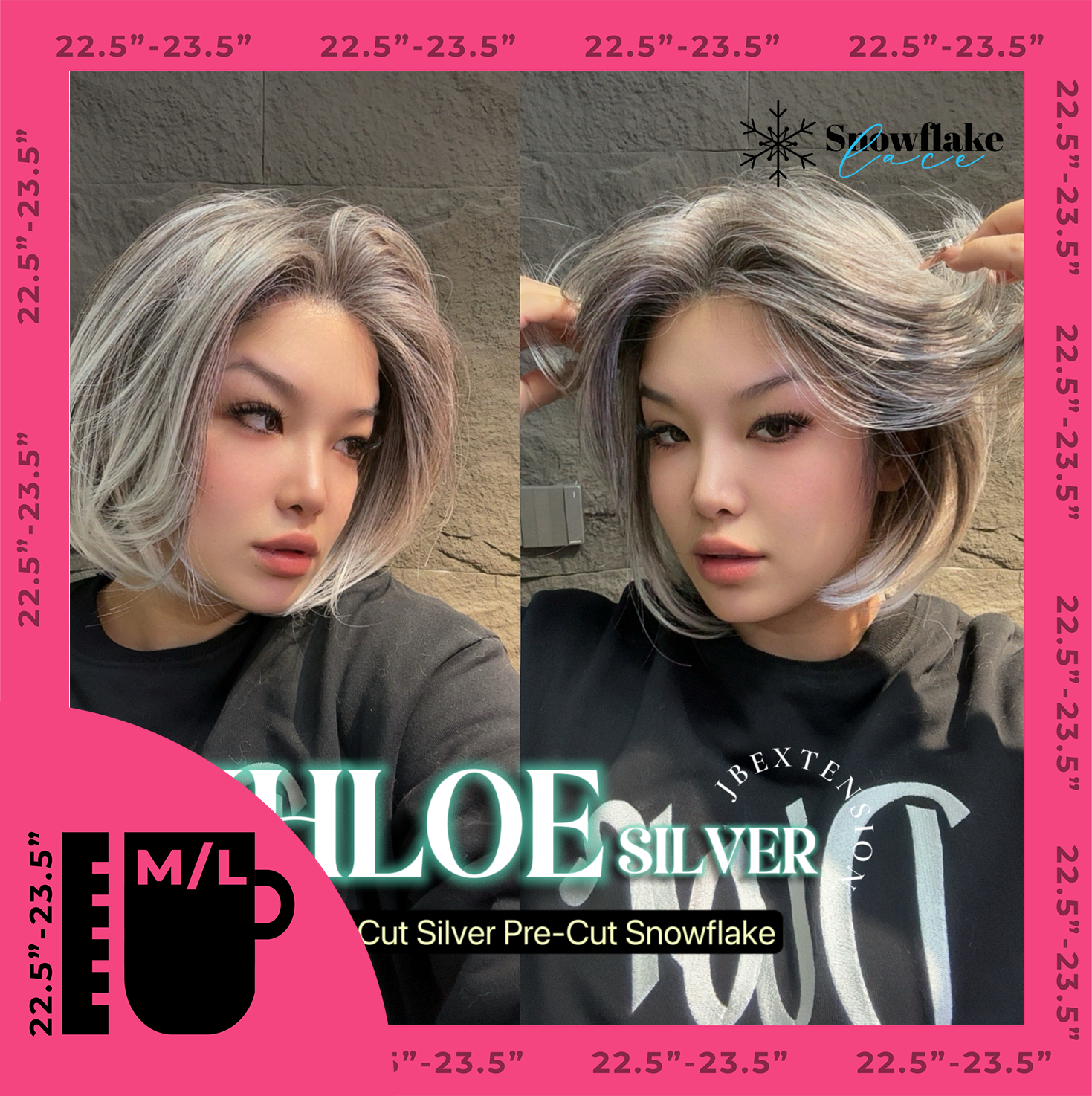 JBEXTENSION 12 Inches Bob Cut Silver Pre-Cut Snowflake Lace Frontlace Glueless Wig KHLOE SILVER【PERMATEASE】【BENDY EAR TABS】- M/L