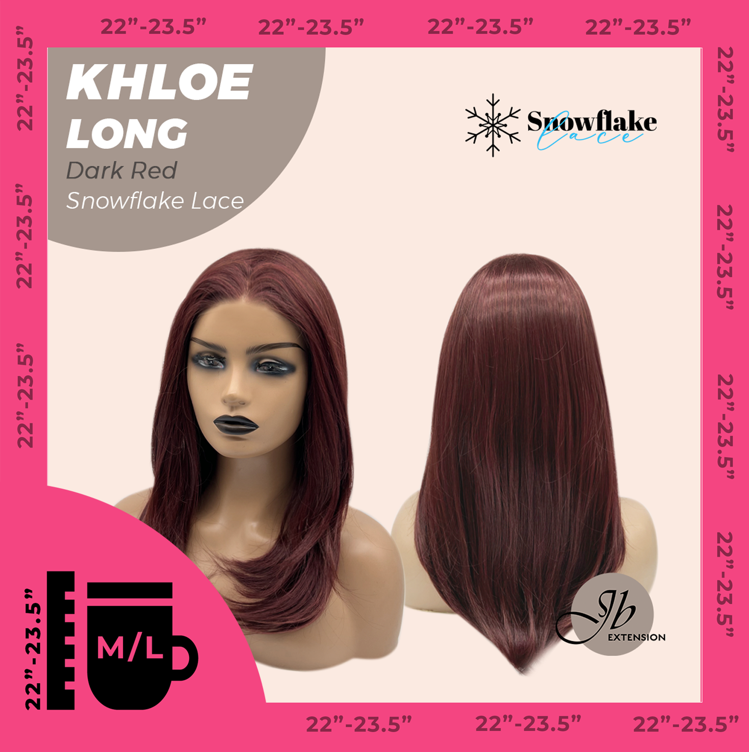 JBEXTENSION 18 Inches Dark Red Pre-Cut Snowflake Lace Frontlace Glueless Wig KHLOE LONG DARK RED【PERMATEASE】【BENDY EAR TABS】- M/L