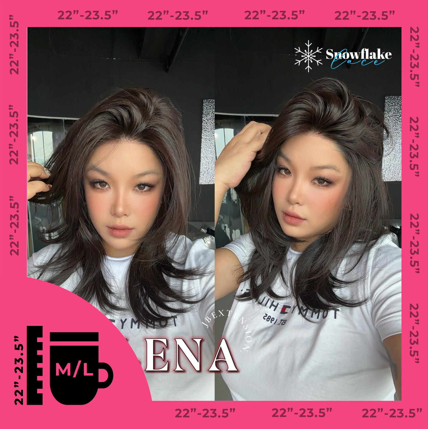 JBEXTENSION 18 Inches Natural Black Pre-Cut Snowflake Lace Frontlace Glueless Wig ELENA【PERMATEASE】【BENDY EAR TABS】- M/L