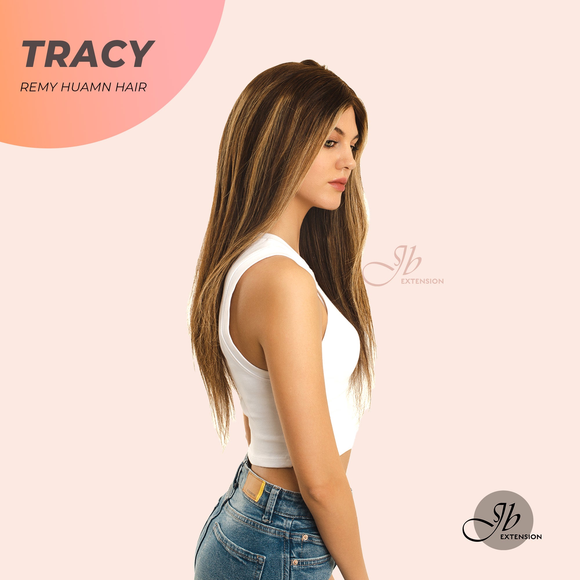 JBEXTENSION Peluca de mujer TRACY recta de 18 pulgadas de color marrón oscuro con líneas altas REAL (sin pegamento)