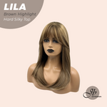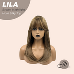 JBEXTENSION 20 Inches Scalpiana Brown Highlight Wolf Cut 3.5X4 Hard Silky Top Natural Scalp Effect Wig With Bangs LILA BROWN HIGHLIGHT