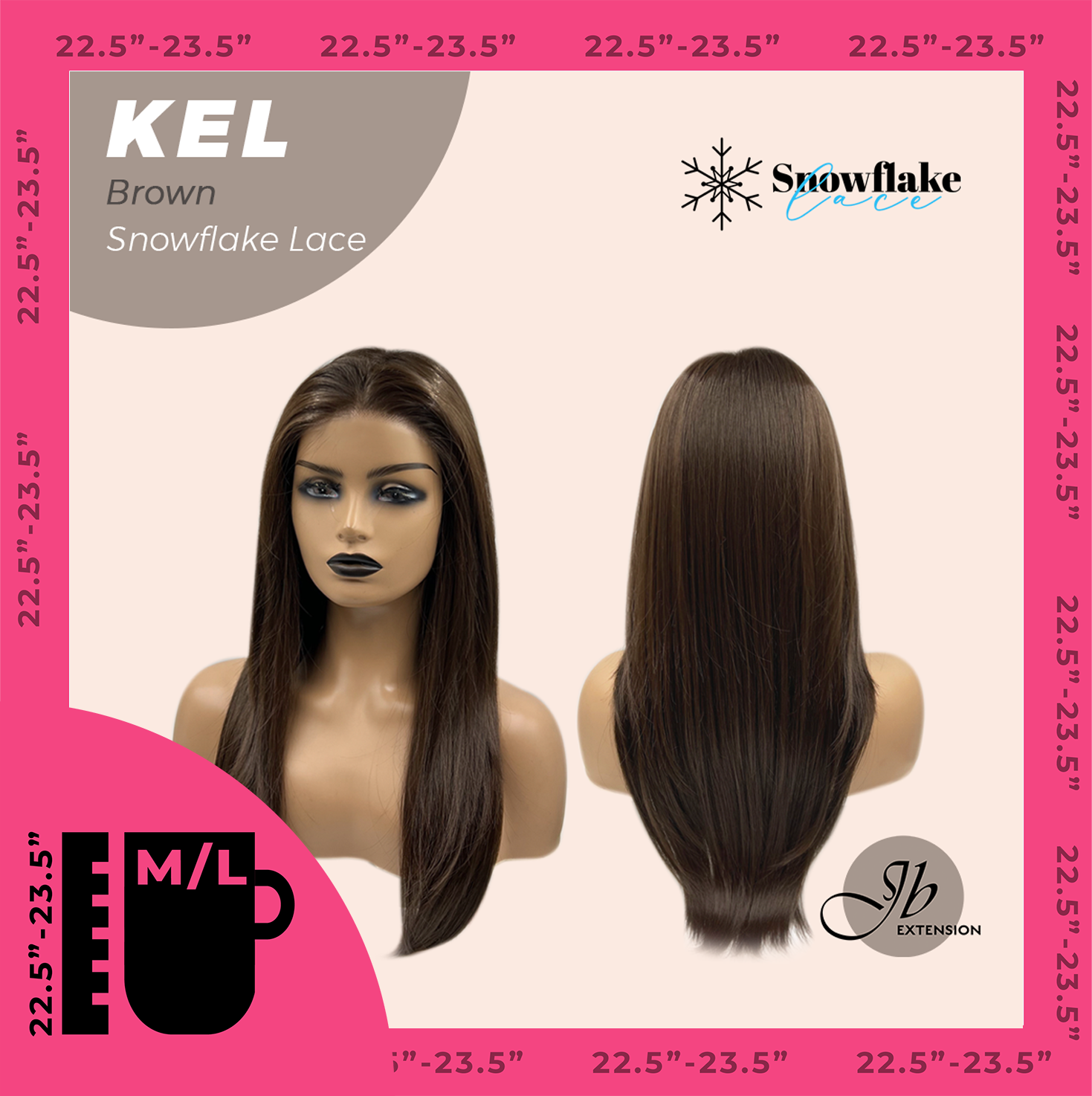 JBEXTENSION 22 Inches Brown Pre-Cut Snowflake Lace Frontlace Glueless Wig KEL BROWN【PERMATEASE】【BENDY EAR TABS】- M/L
