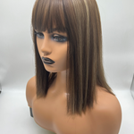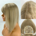 JB EXTENSION Clip en la parte superior del cabello con flequillo para mujeres Clip en la parte superior de la corona Clip en el peluquín para una ligera pérdida de cabello/adelgazamiento del cabello 14 pulgadas 5*5