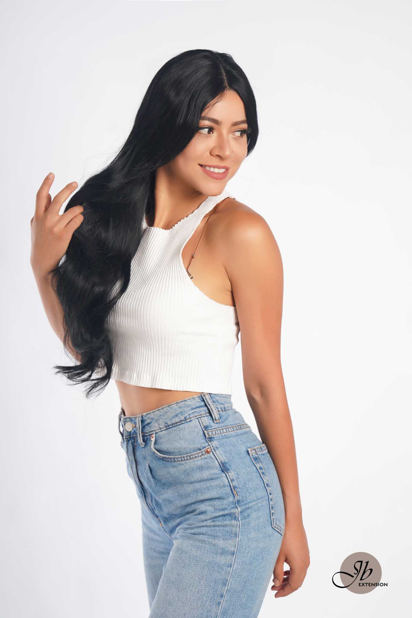 JBEXTENSION Peluca rizada de 26 pulgadas para mujer, color negro azabache, peluca frontal precortada, EMMIE JET BLACK