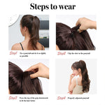 - Easy to use: The ponytail wig is fixed to the clip, so you only need to spend a minute to open the clip and fix it in the right position to get beautiful.Due to storage and transportation methods, the wig you get may be deformed and frizzy, please be patient and comb it before use.