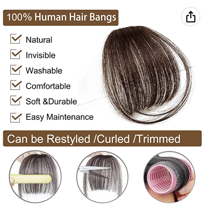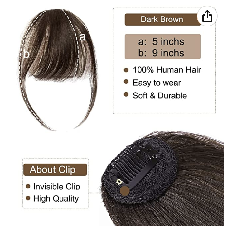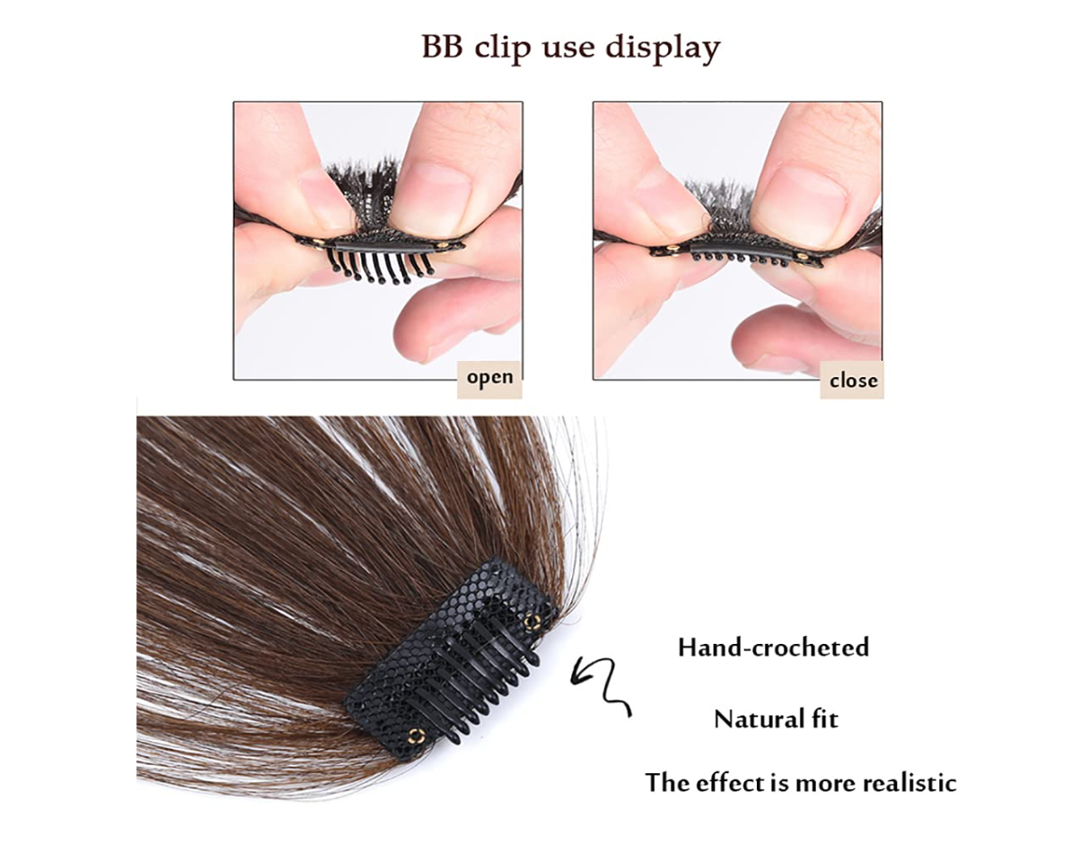 - NATURAL Experience & BLEND WELL: Clip in hair bangs with temple are made of human hair, sewn in good clips. The clips have a strong strip and seam is barely invisible, so other people cannot tell it is a bang on top of your own hair. Also enough thickness to cover the forehead without worrying about Wispy