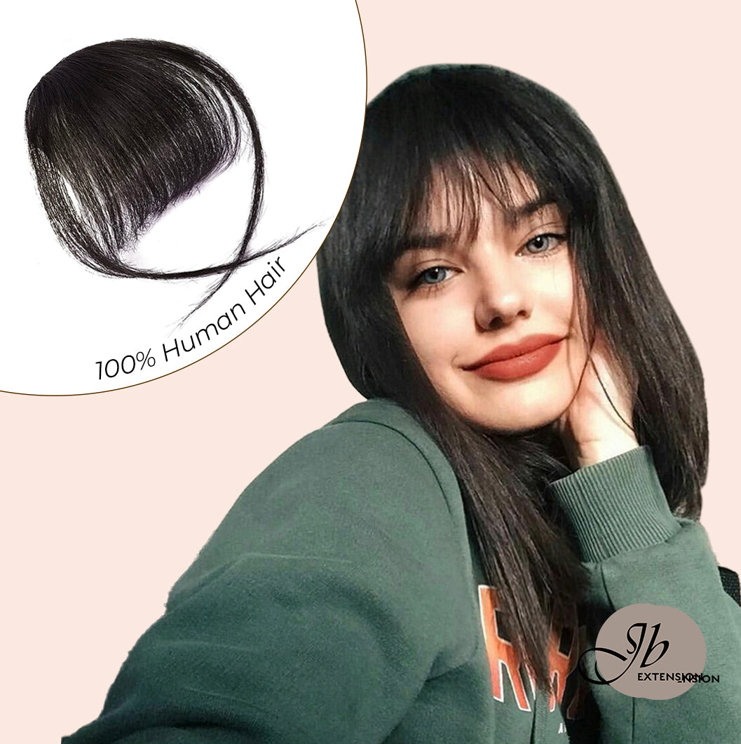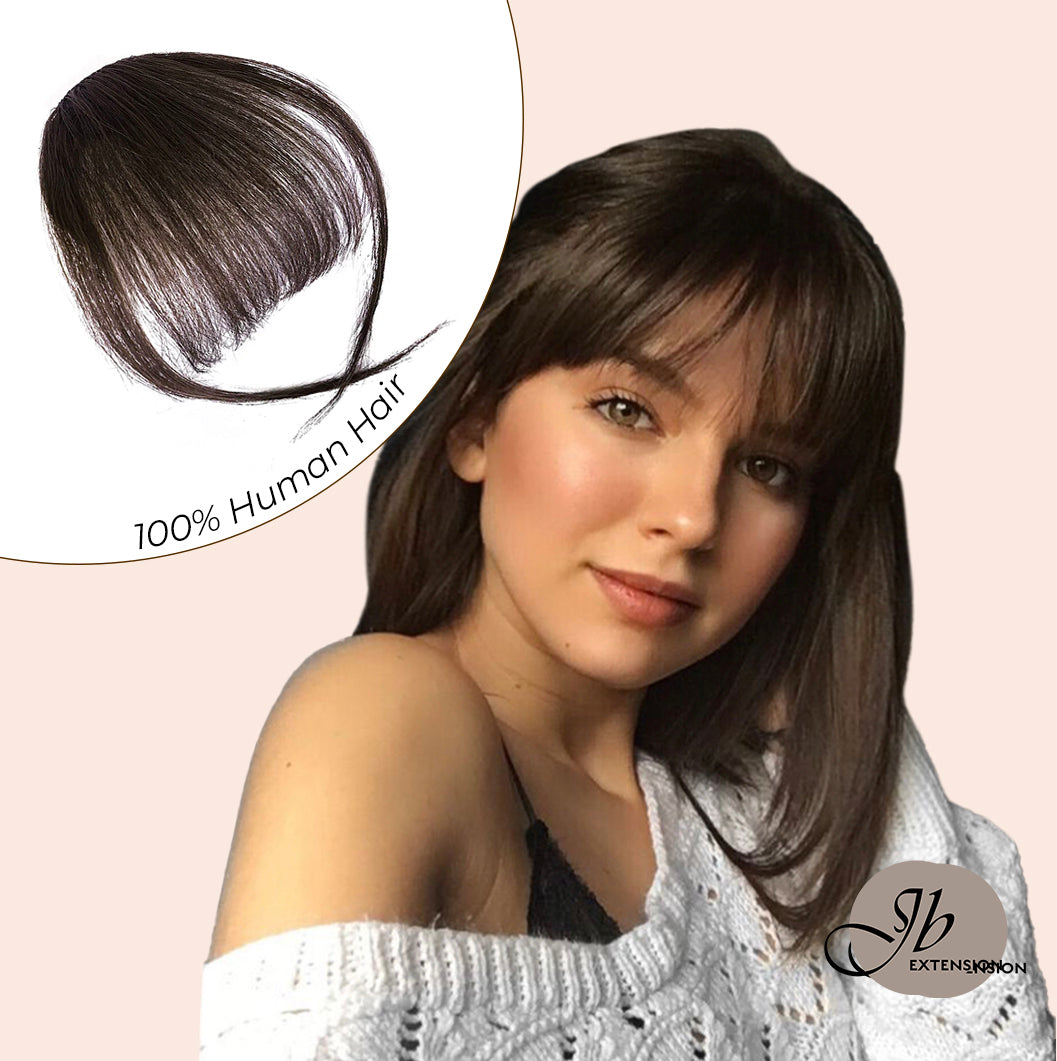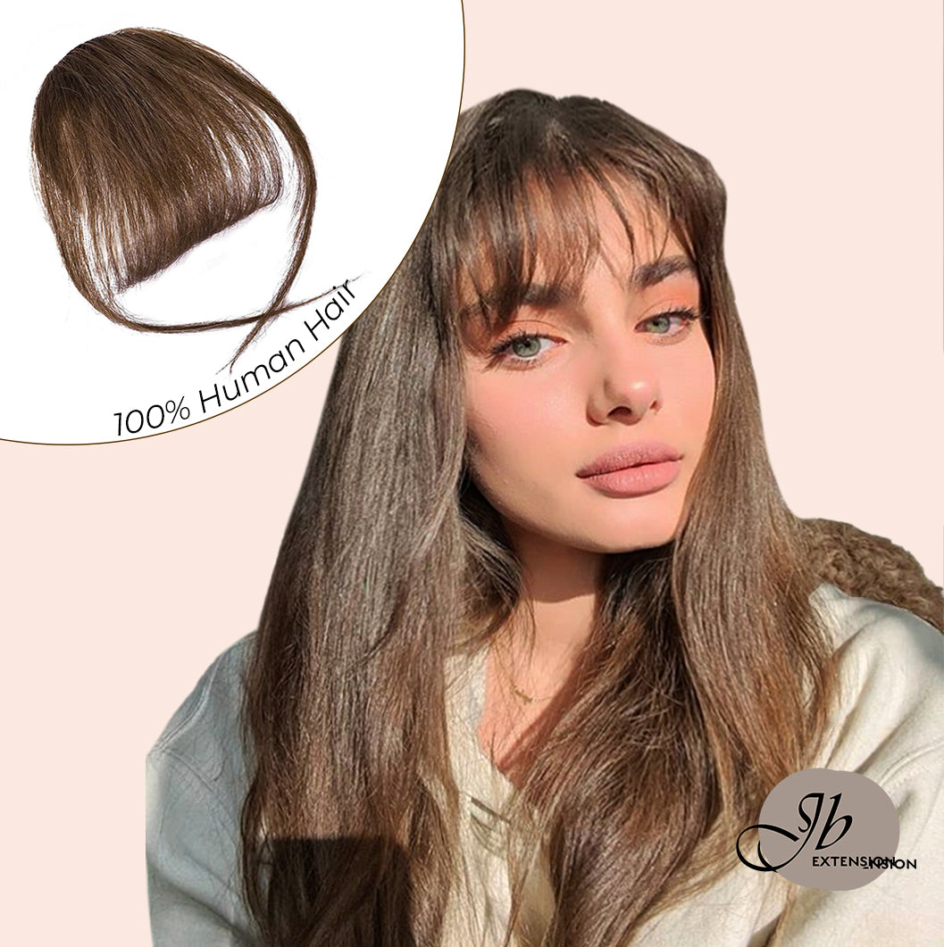 JBextension Air Bangs Hair Clip in Bangs for Women 100% Human Hair Wispy Bangs Fringe with Temples Hairpieces Clip on Air Bangs Flat Neat Bangs Hair Extension for Daily Wear