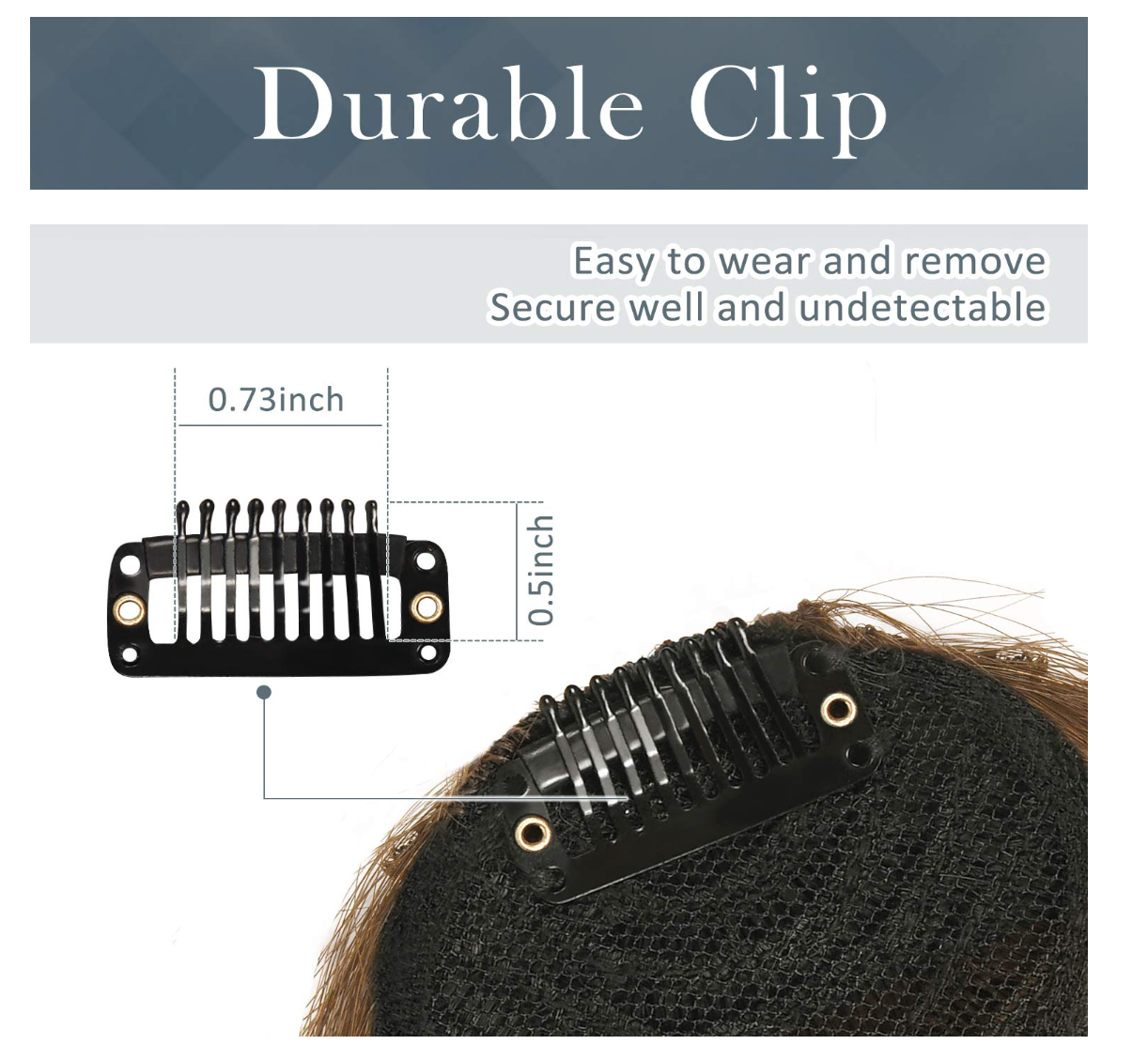 - ?Easy to Wear - Clip-in bangs design, super intuitive and simple, change a new hairstyle in 30 seconds. Clips are secure and undetectable even on your thin front hairline.