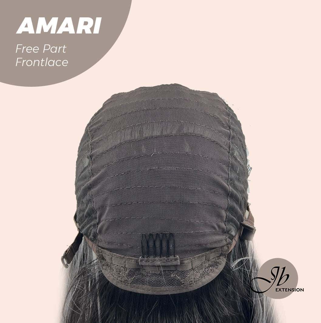 JBEXTENSION 18 Inches Black With White Highlight Pre-Cut Free Part Frontlae Glueless Wig AMARI