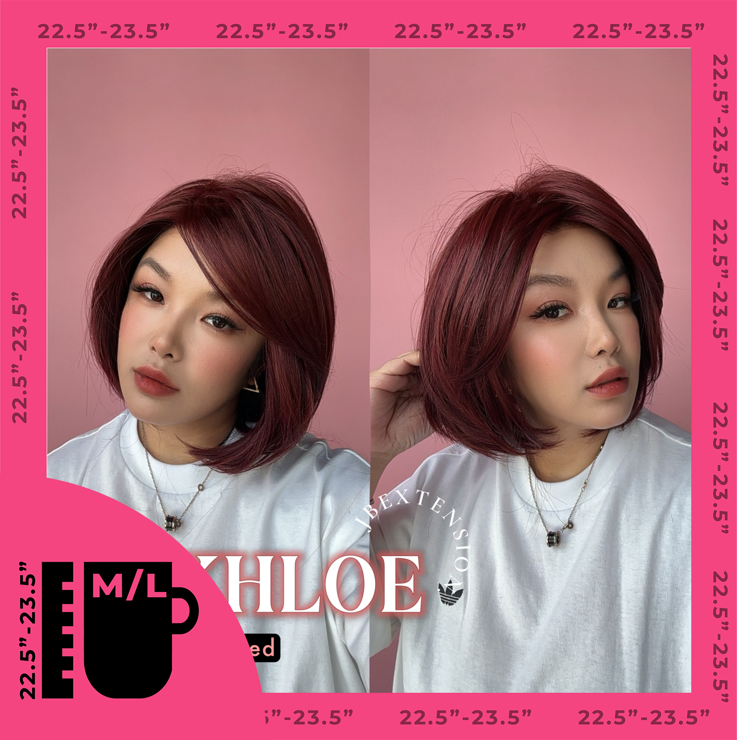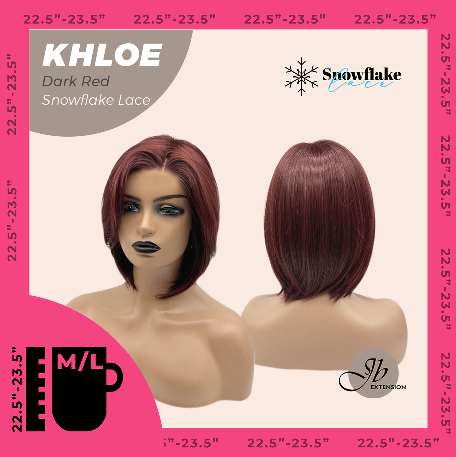 JBEXTENSION 12 Inches Bob Cut Dark Red Pre-Cut Snowflake Lace Frontlace Glueless Wig KHLOE DARK RED【PERMATEASE】【BENDY EAR TABS】- M/L