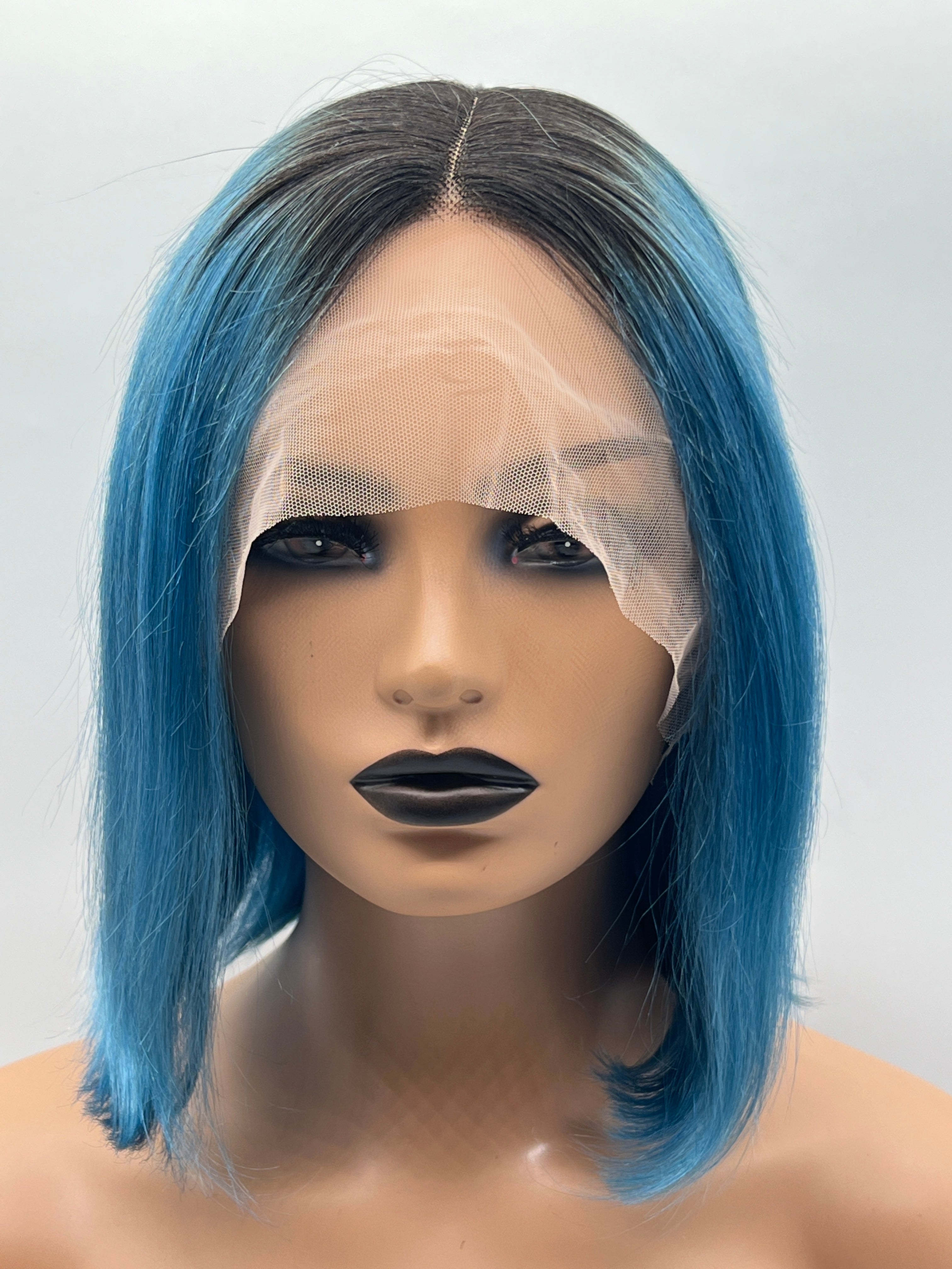 JBEXTENSION 12 Inches Bob Cut Frontlace Real Huaman Hair Crazy Color Wig PANDORA-AQUA