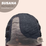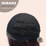 JBEXTENSION 9 Inches Red Purple Highlight Pre-Cut Side Part Snowflake Lace Frontlace Glueless Wig SUSANA RED PURPLE HIGHLIGHT【BENDY EAR TABS】