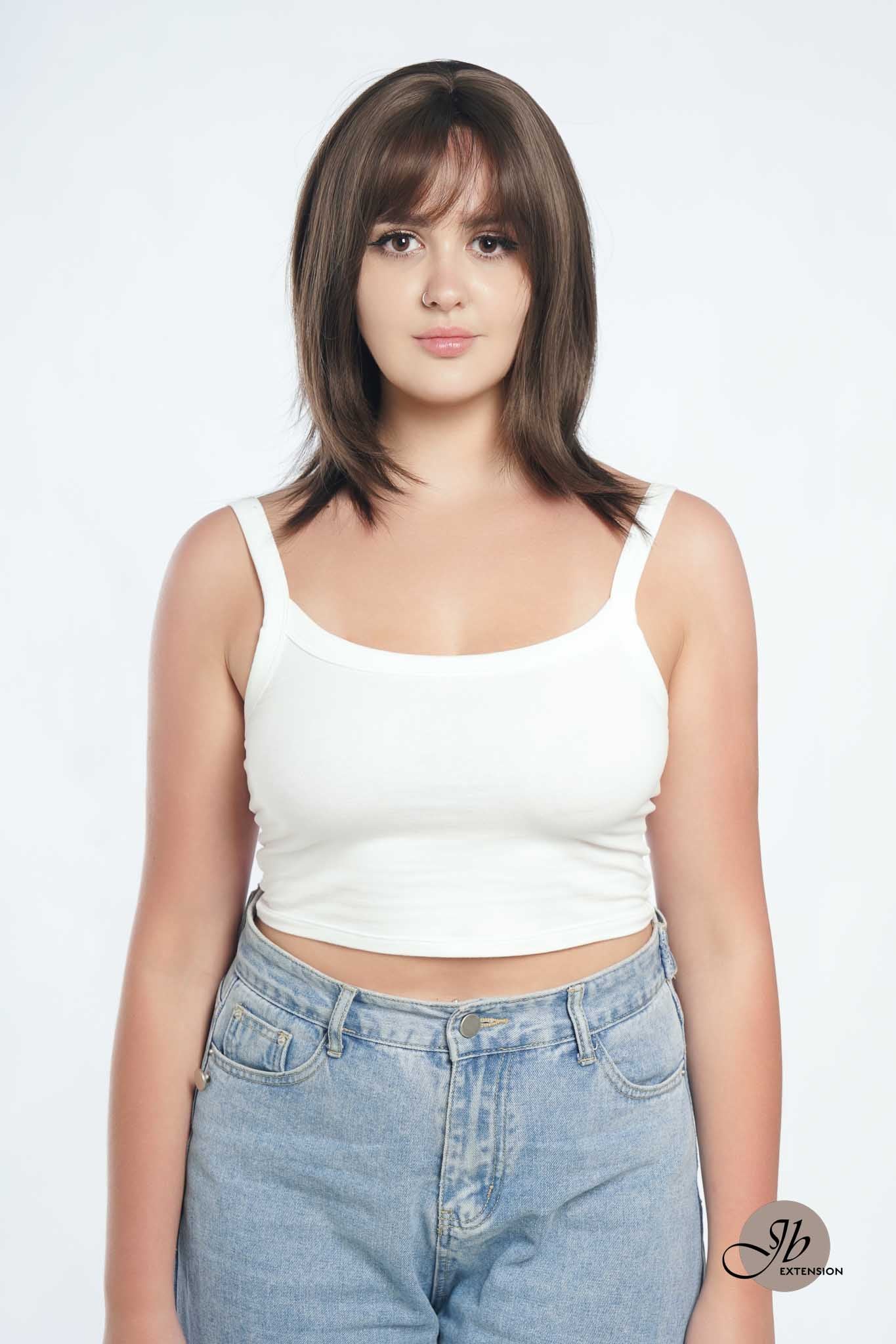 JBEXTENSION 15 Inches Cold Brown Wig With Bangs MIRA