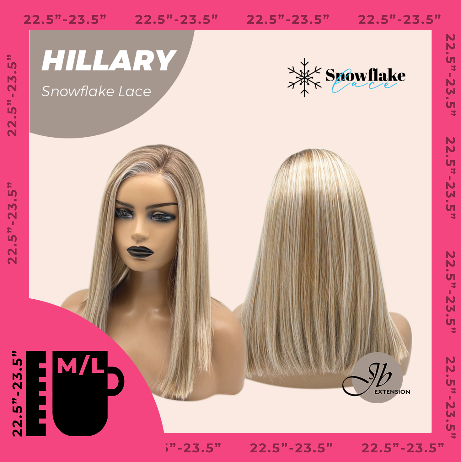 JBEXTENSION 16 Inches Blonde Straight Pre-Cut Side Part Snowflake Lace Frontlace Glueless Wig HILLARY SNOWFLAKE【BENDY EAR TABS】- M/L