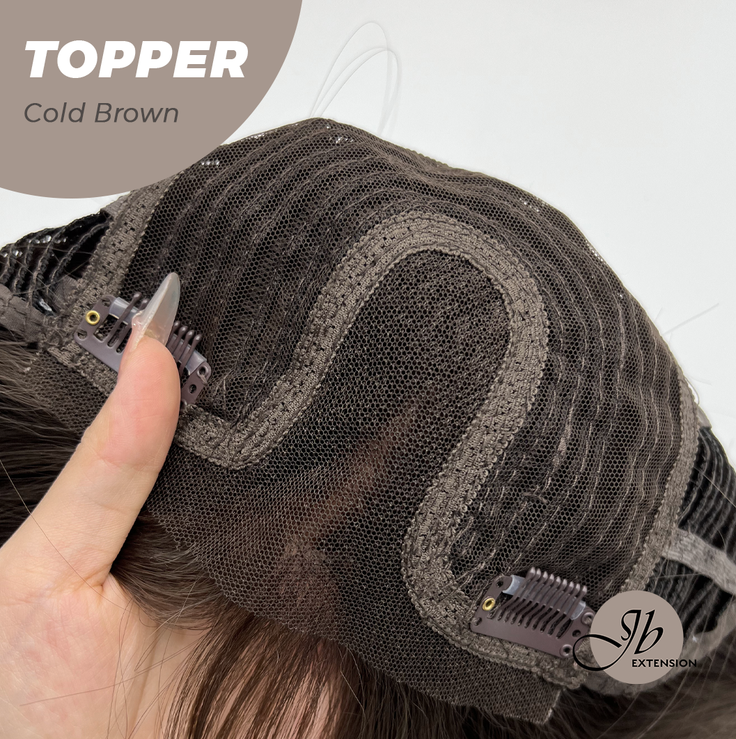 JBEXTENSION 28 Inches T Part Pre-Cut Frontlace Topper Clip in Synthetic Fiber Long Straight Topper Hair Piece Hair with Bangs for Women Clip in Top Crown Hair Clip on Toupee Hairpiece for Slight Hair Loss/Thinning Hair