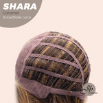 JBEXTENSION 17 Inches Curly Caramel Pre-Cut T Part Snowflake Lace Frontlace Glueless Wig SHARA CARAMEL【BENDY EAR TABS】
