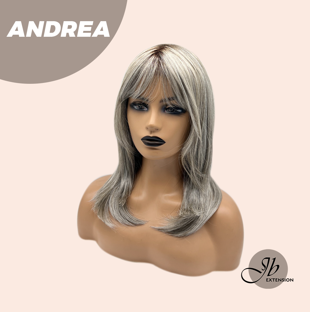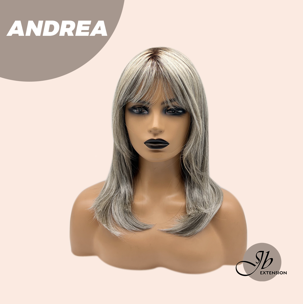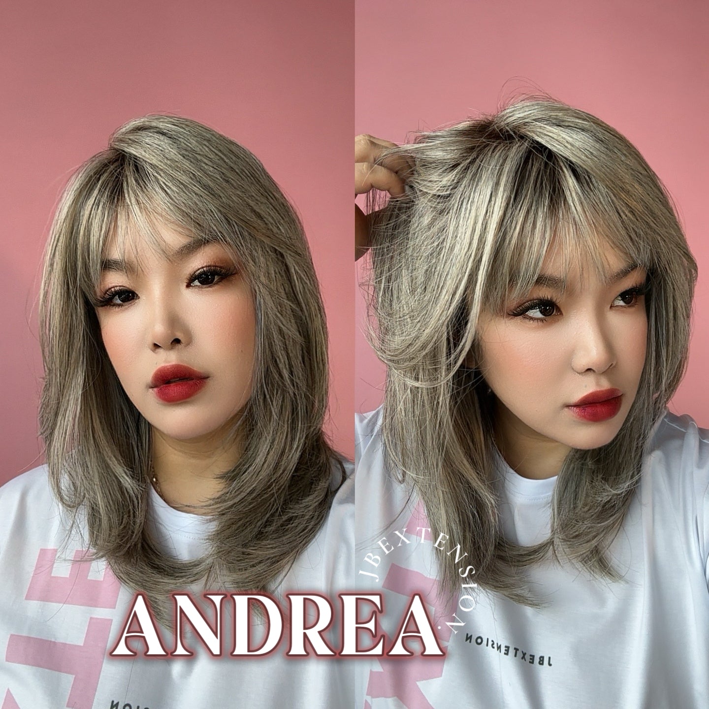 JBEXTENSION 18 Inches Ash Grey Wig with Bangs Women Fashion Full Machine Wig ANDREA【PLUS PERMATEASE】【BENDY EAR TABS】