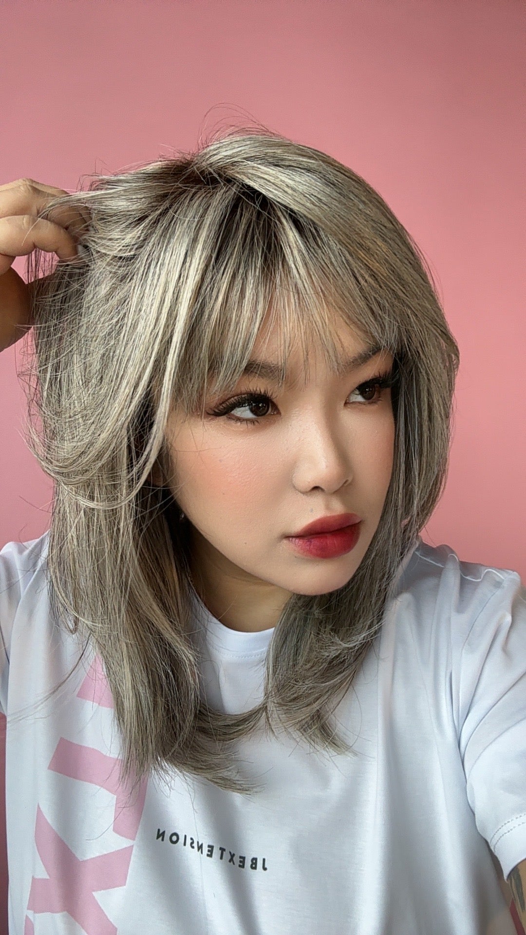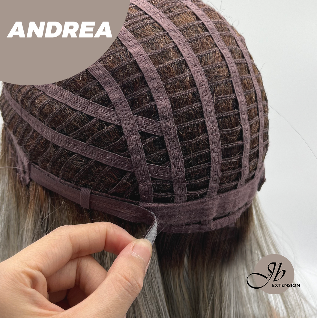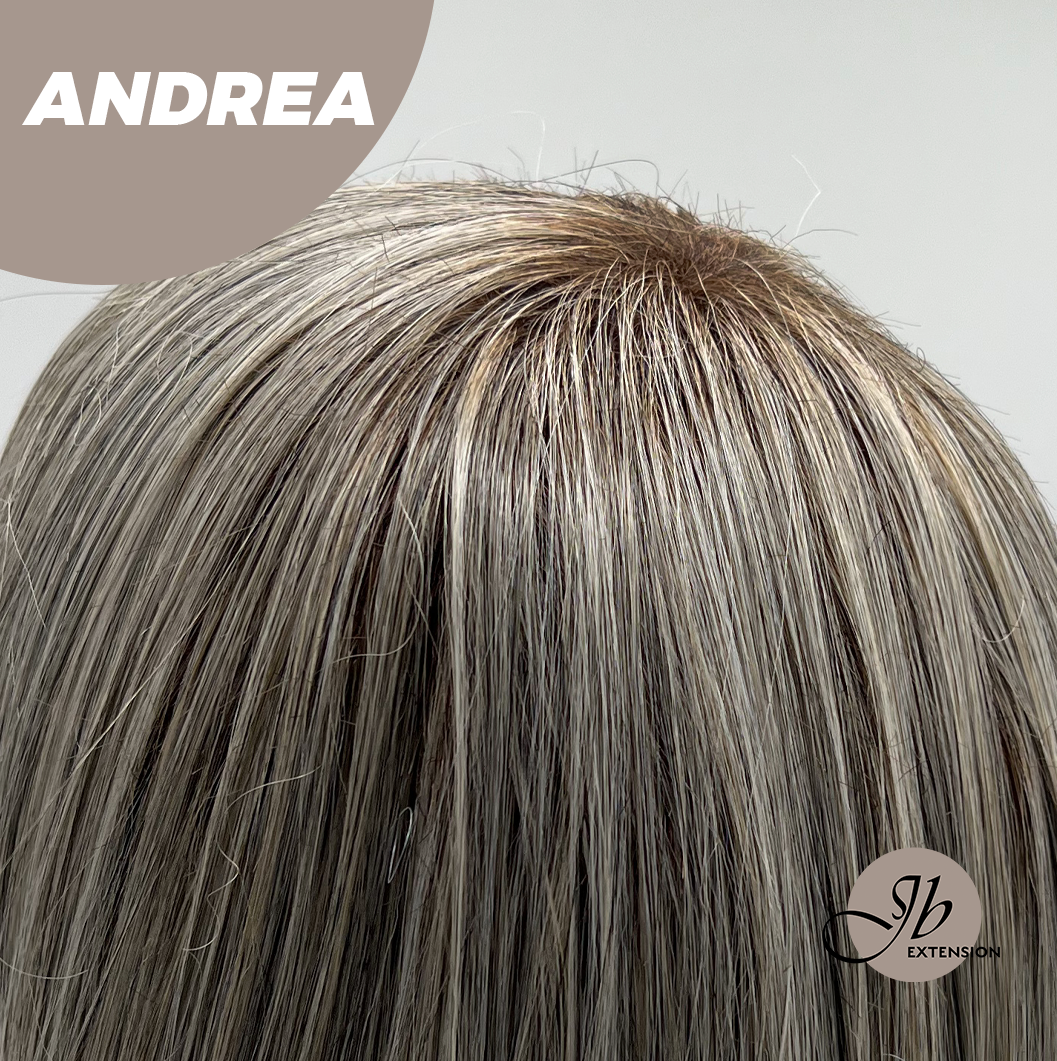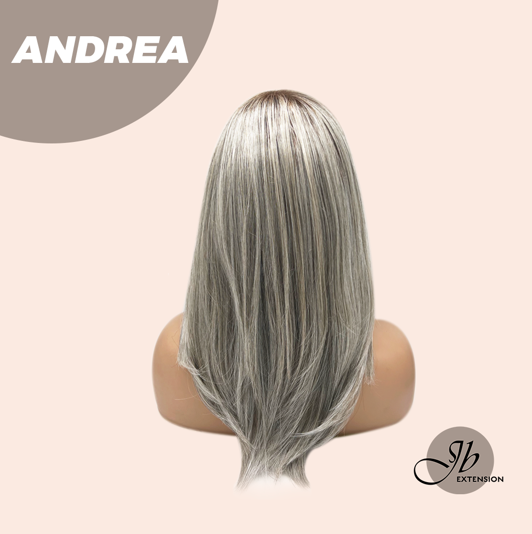 JBEXTENSION 18 Inches Ash Grey Wig with Bangs Women Fashion Full Machine Wig ANDREA【PLUS PERMATEASE】【BENDY EAR TABS】